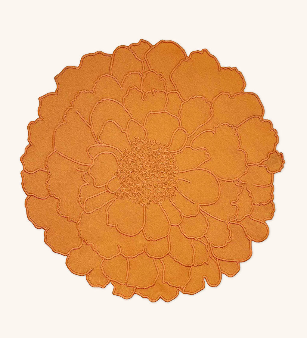 Individuales Flora en Algodón Naranja Bordado de Cempasúchil. Set de 4
