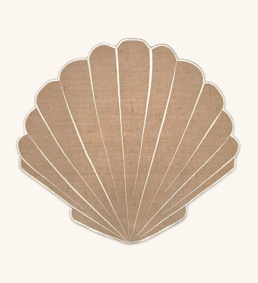 Individuales La Mar de Concha en Yute Bordado en Ivory. Set de 4