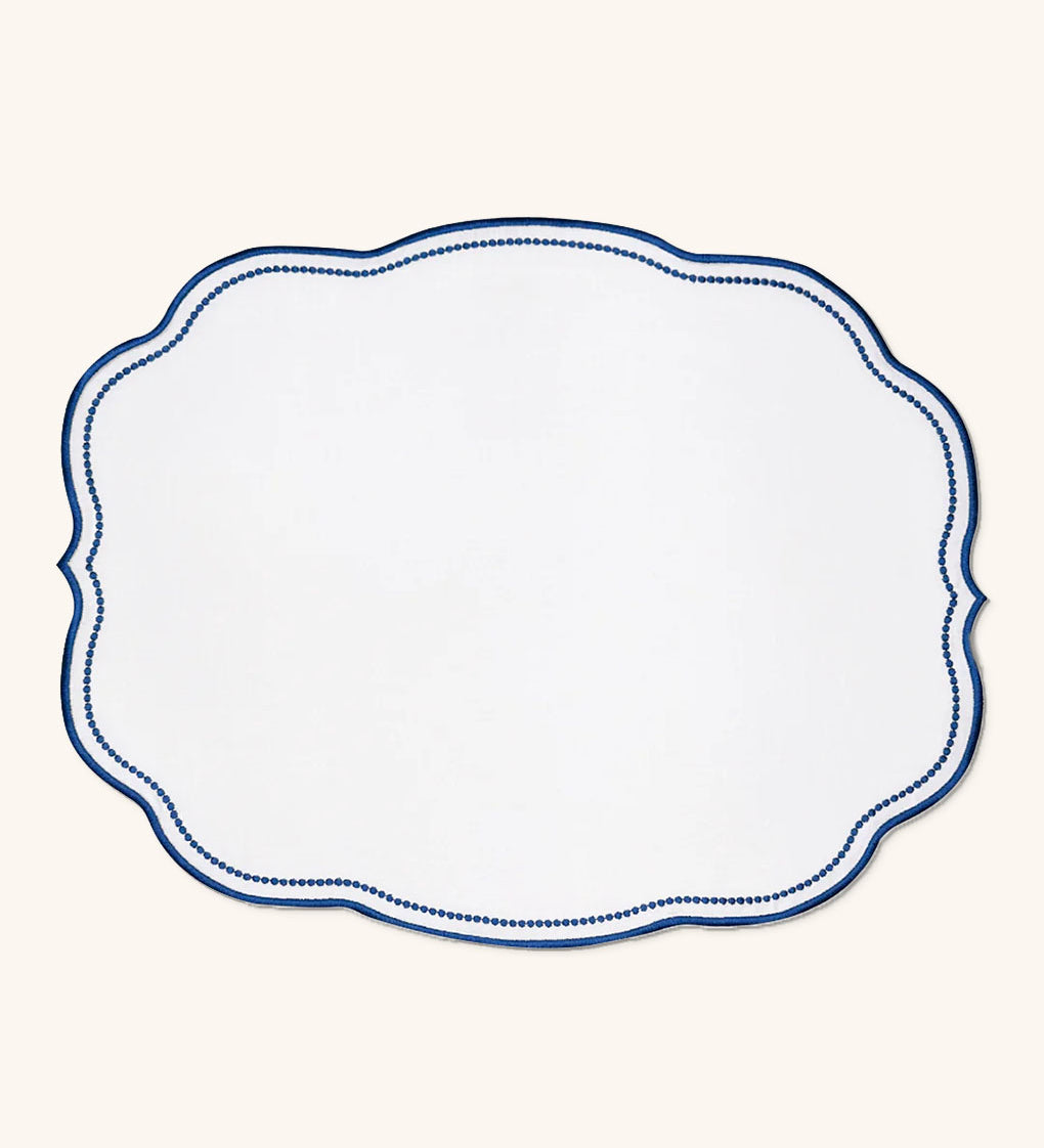 Individuales Sofía en Lino Blanco con Bordado Azul. Set de 4