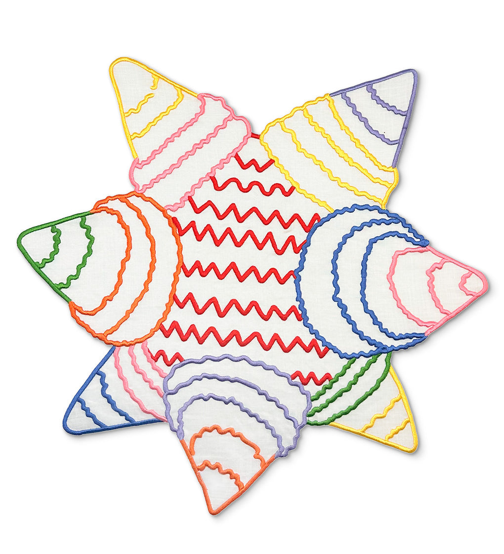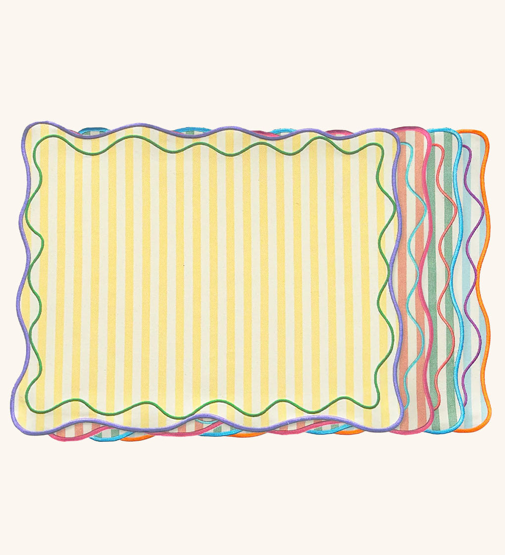 Individuales Tutti Frutti en Algodón Rayas de Colores con bordado de Ondas. Set de 4