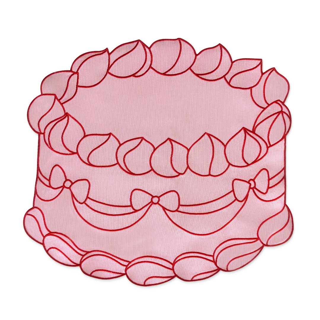 Individuales Sweet en Algodón Rosa Bordado en Forma de Pastel. Set de 4