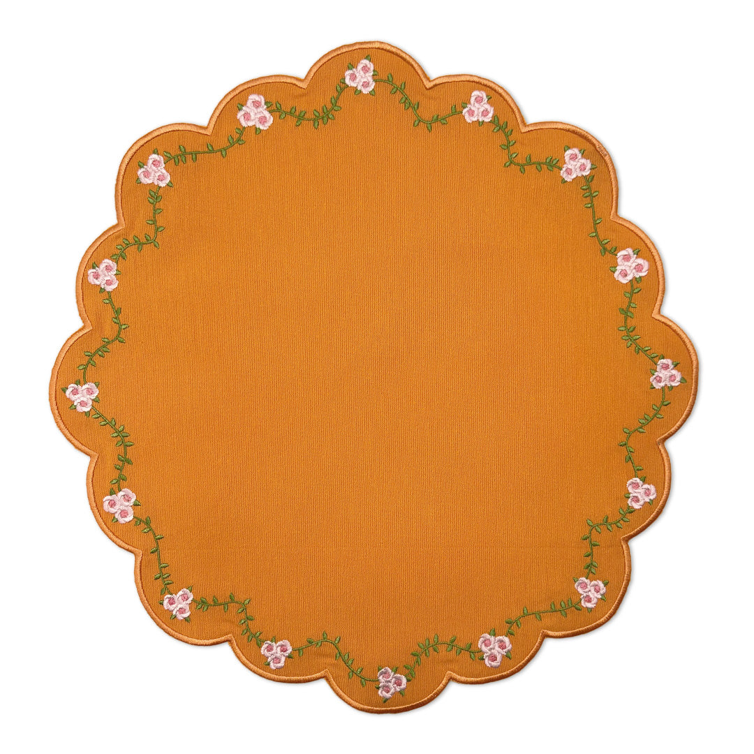 Individual Pily en Algodón Naranja con Bordado de Florecitas. Set de 4