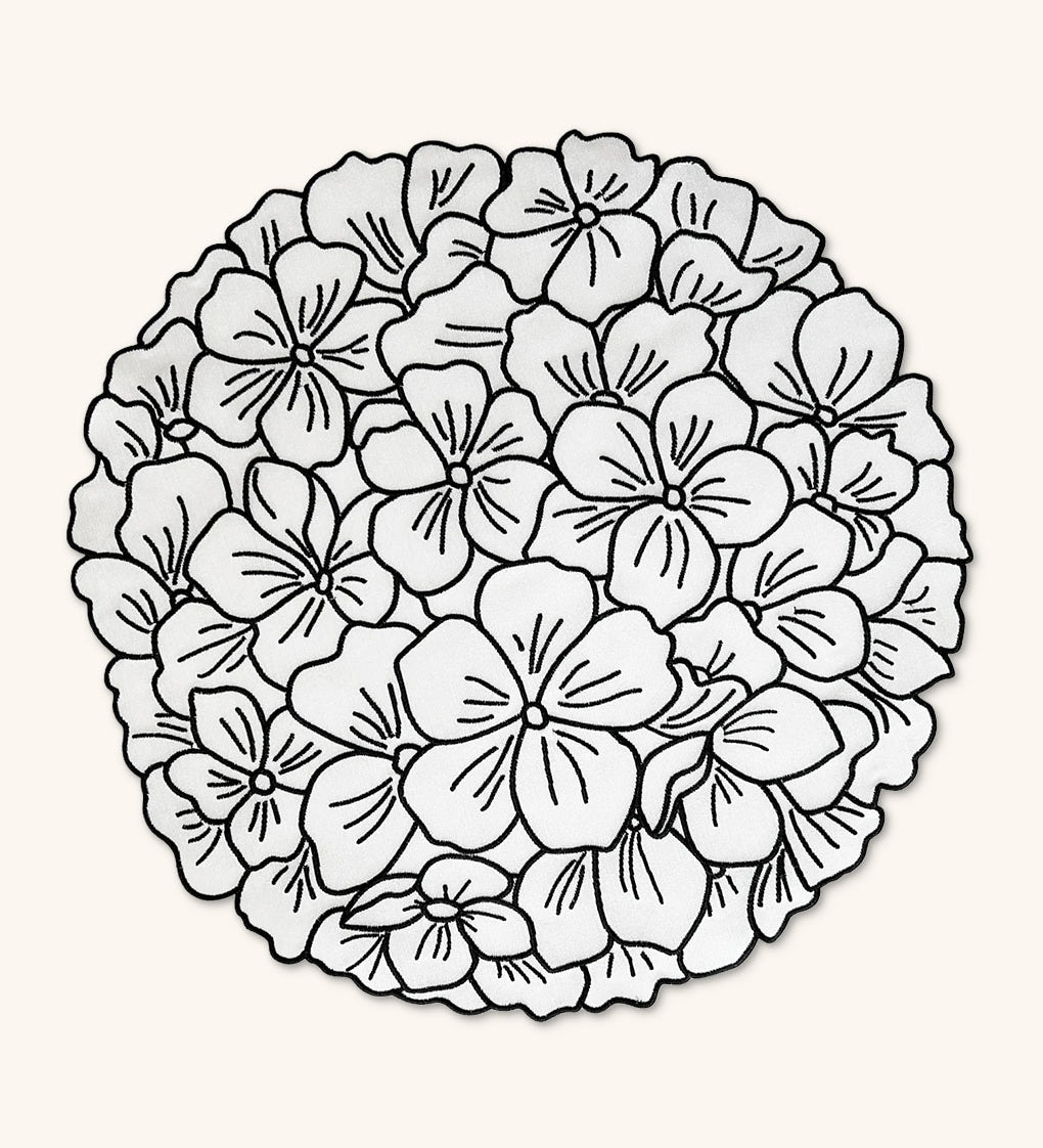Mantel Individual en Forma de Hortensia Blanca con Borde Negro en Algodón, Set de 4