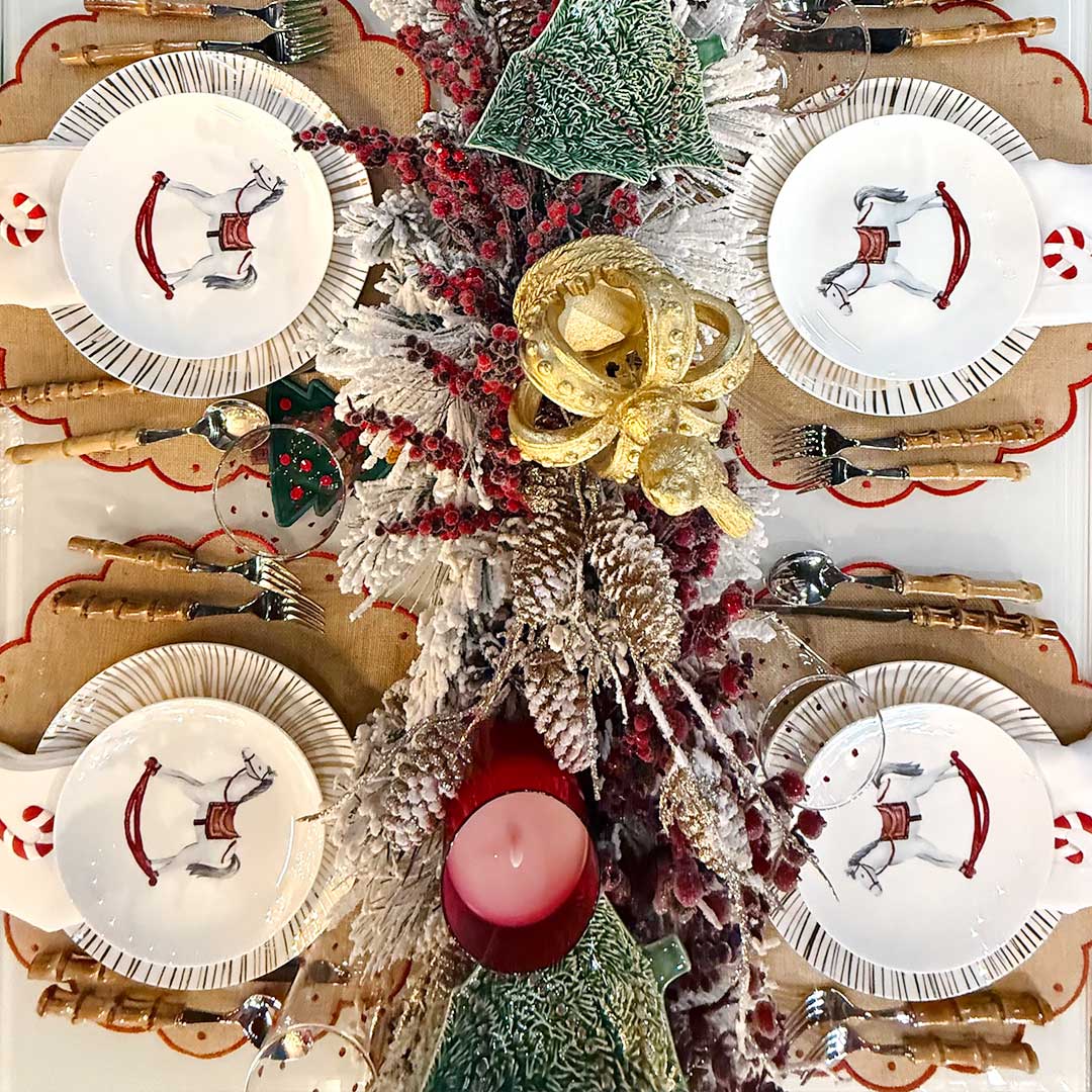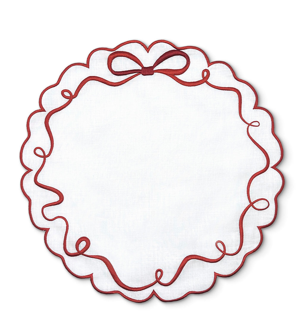 Individuales Red Bow en Lino Blanco con Bordado de Moño Rojo. Set de 4