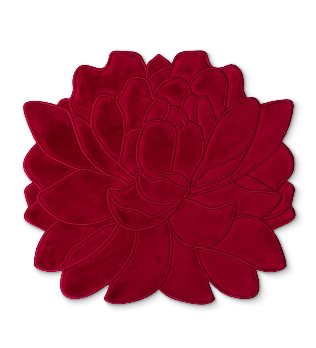 Individuales Blossom Bordado de Flor en Terciopelo Rojo. Set de 4