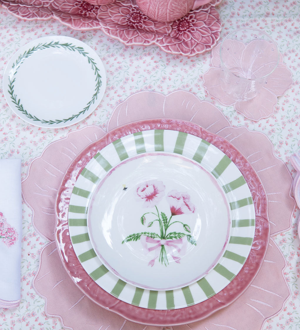 Individuales Arrecife de Coral Bordado en Algodón Rosa. Set de 4