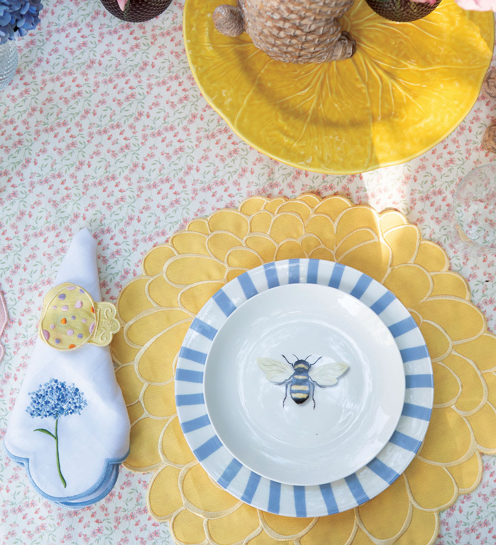 Individual Big Daisy de Yute con Orilla Bordada en Ivory. Set de 4