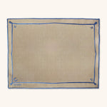 Individuales Cowgirl en Lino Caramelo con Bordado Azul. Set de 4