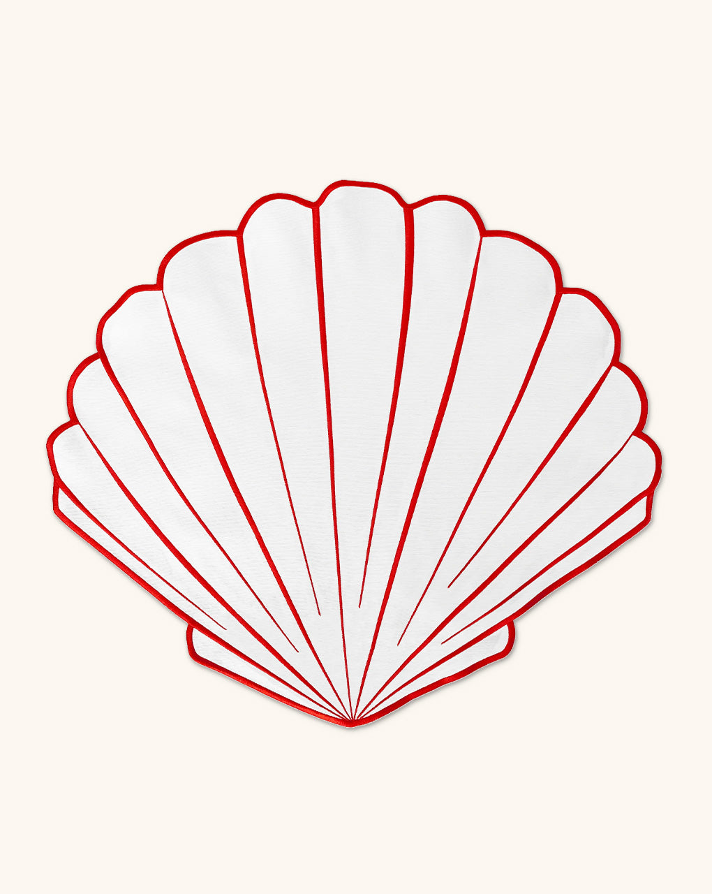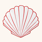 Juego de 4 Individuales en Forma de Concha en Loneta Blanca con Doble Orilla Bordada en Rojo