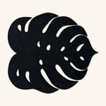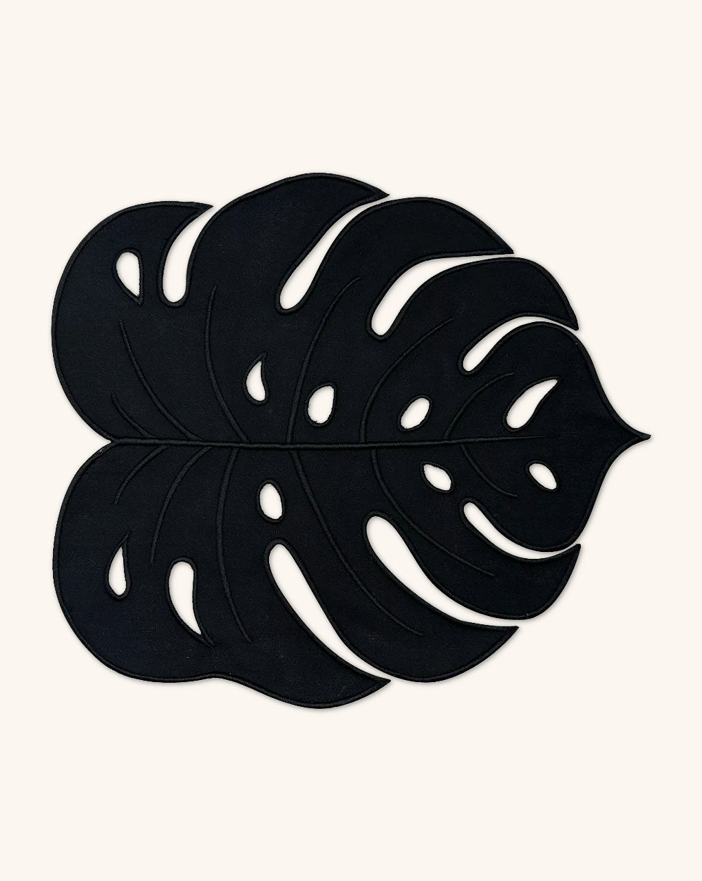 Juego de 4 individuales en forma de una hoja tropical de lino en color negro.