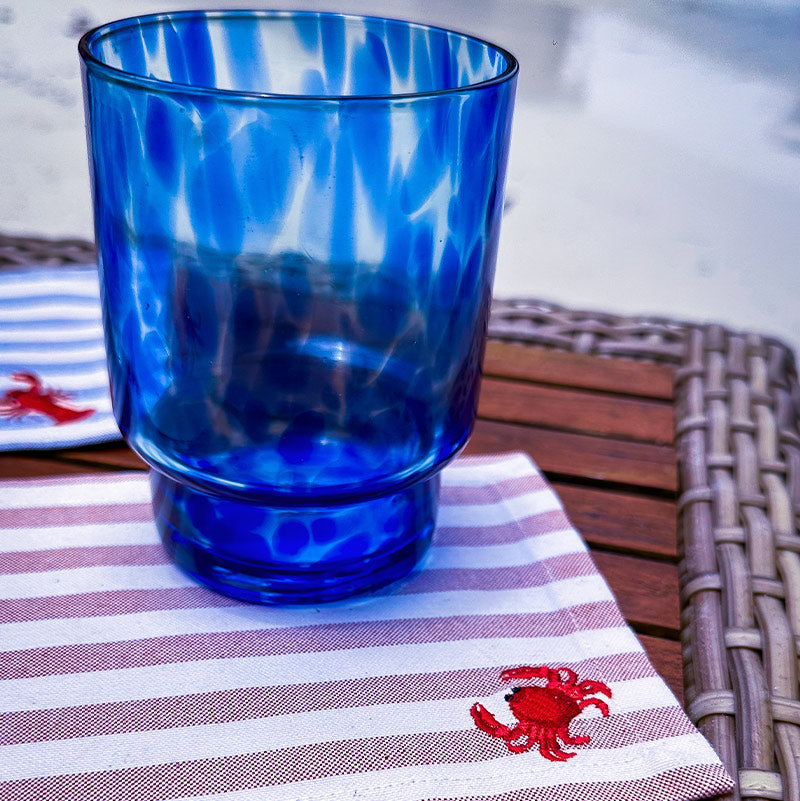 Cocteleras Arrecife con Bordado de Estrella de Mar en Algodón Azul. Set de 4