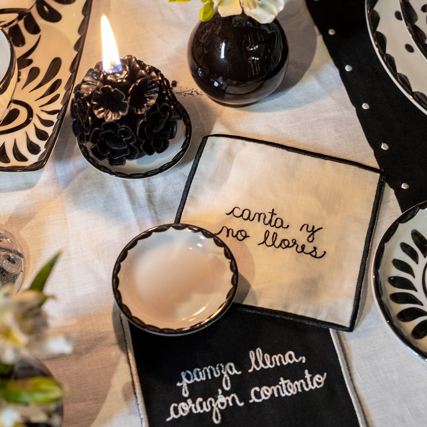 Platito para Sal y Condimentos 8 cm Puebla en Blanco y Negro