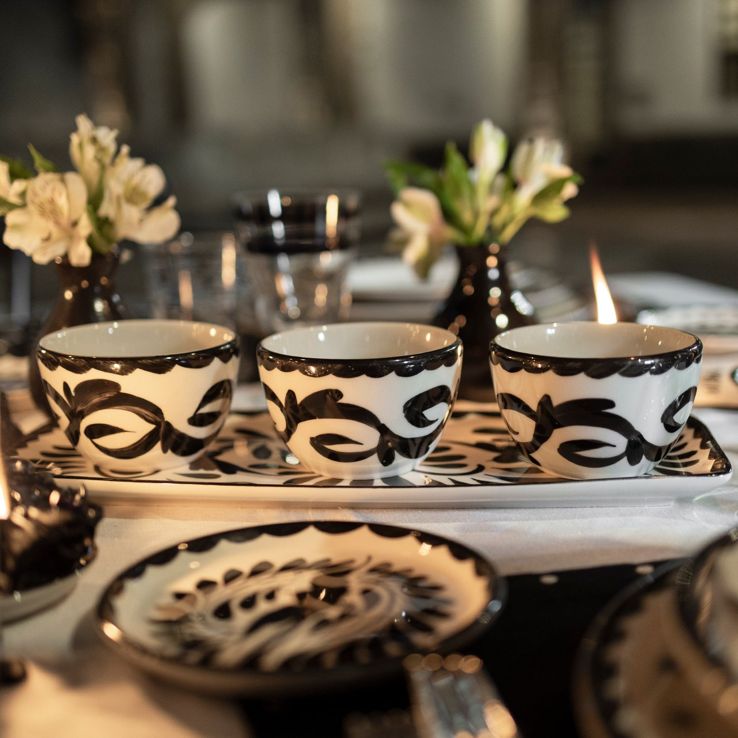 Set Botanero Puebla con 3 Bowls sobre su Charola en Blanco y Negro