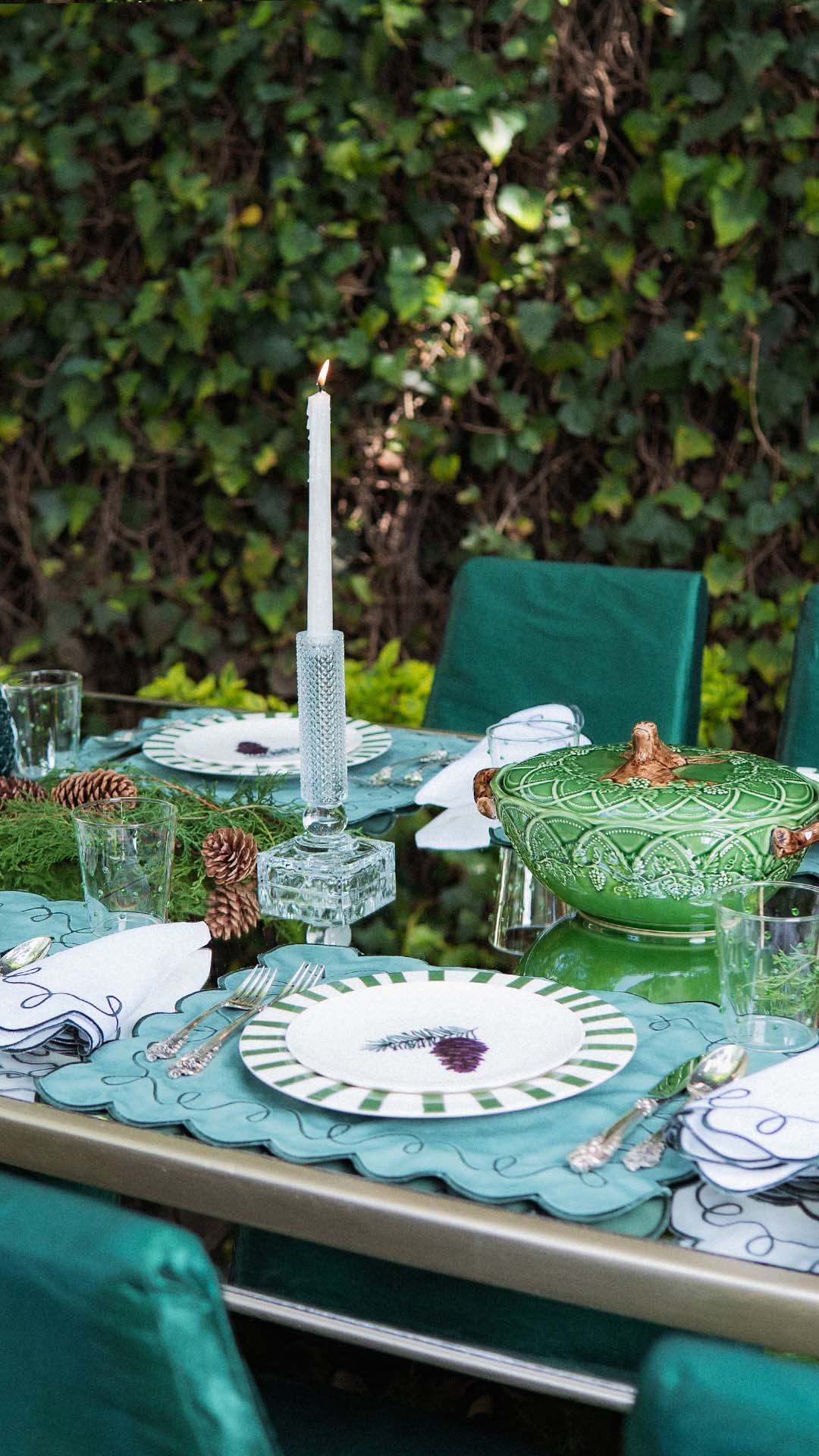 Set de Mantelería Posada con Individuales y Servilletas en Lino Blanco con Bordado de Piñata. Set para 4 personas