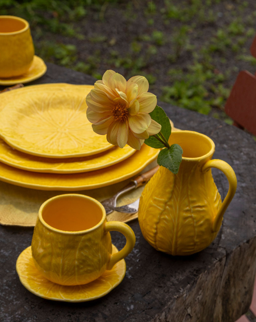 Plato Trinche de Repollo Amarillo Canario. Set de 4