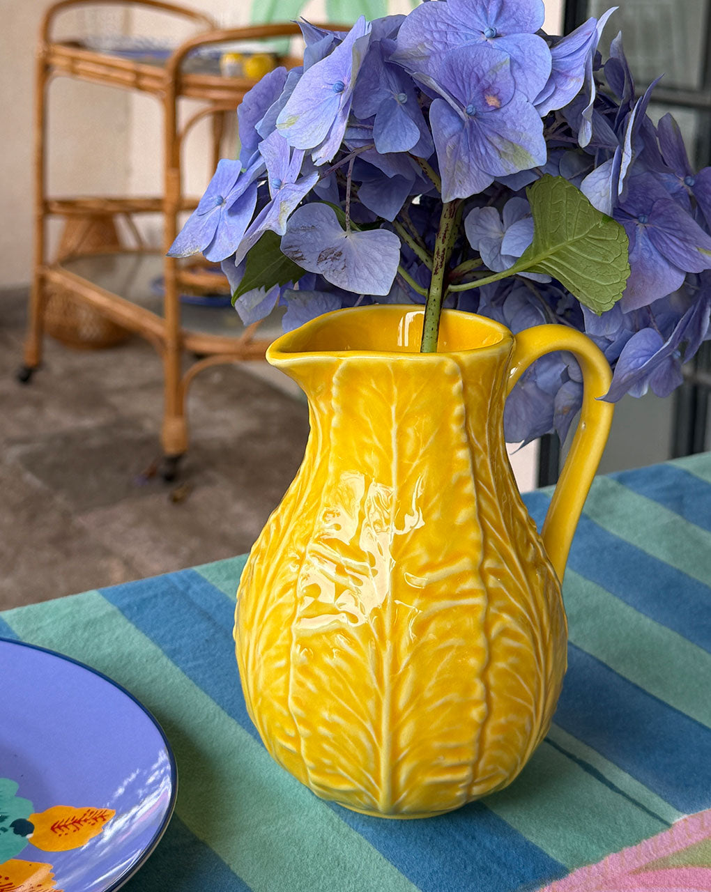 La icónica vajilla de repollo hecha en Portugal en exclusiva para Zash. Jarra de agua en cerámica amarillo canario, una pieza que será un clásico instantáneo. Ideal para combinar con otras vajillas, poner mesas hermosas y para usar toda la vida.