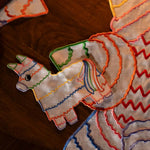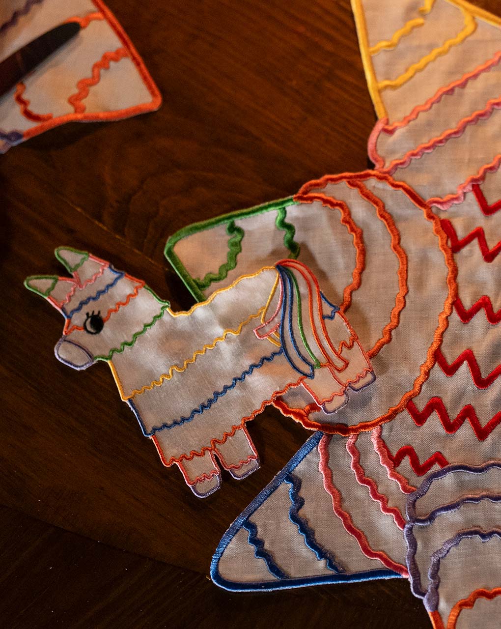 Toda la tradición de las posadas en un set de coquetas cocteleras en forma de piñata y burrito con un bordado multicolor. Nada más chulo y divertido que esto.