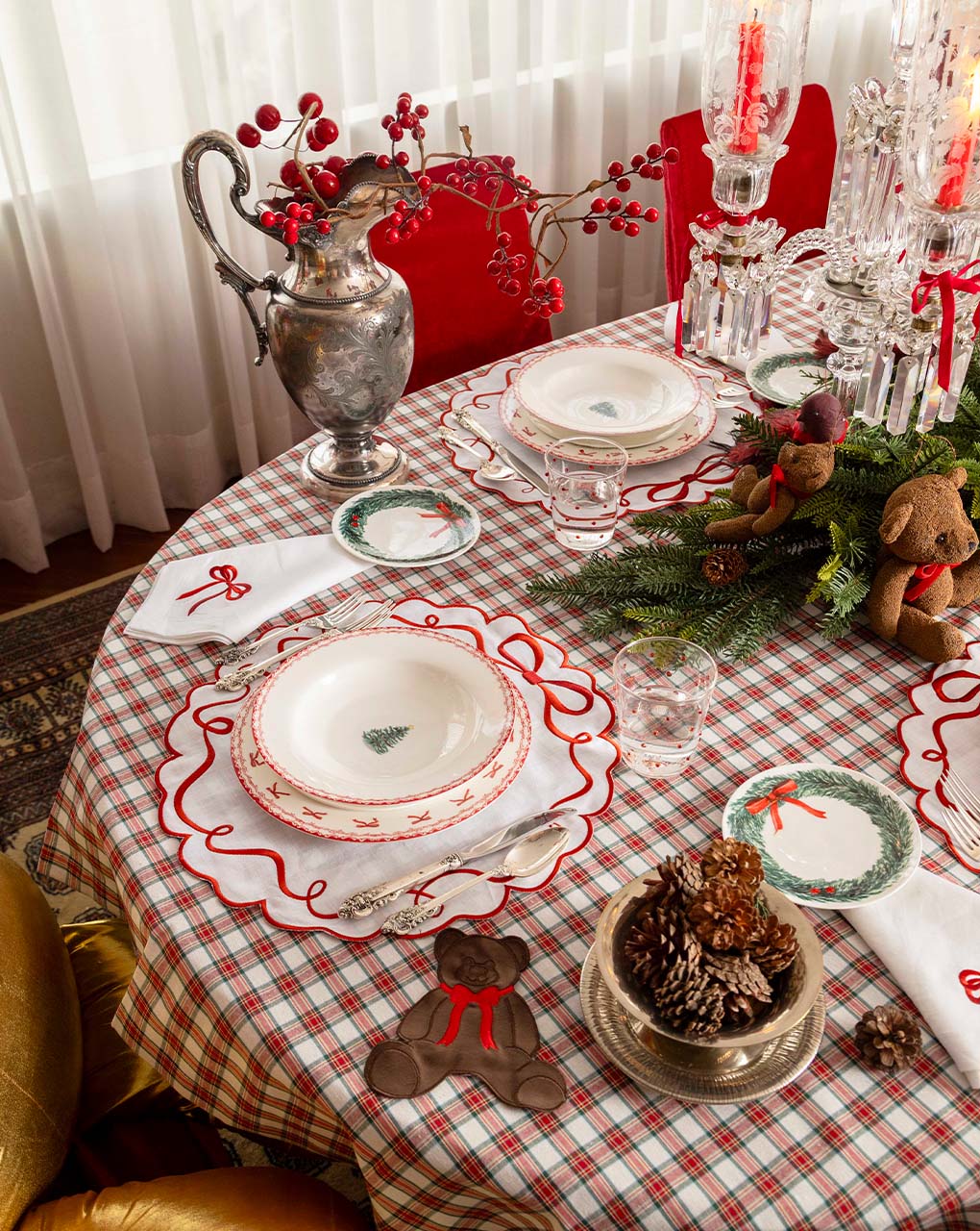 Cocteleras en forma de oso con moño bordadas en terciopelo suave. Ideales para drinks, botanas y decoración de mesas de temporada. Cuteness overload!