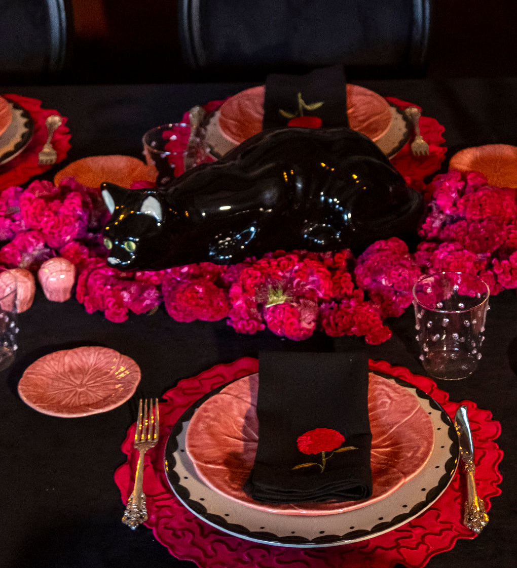 Individuales Vivi en Lino Rosa con Bordado de Pelitos. Set de 4