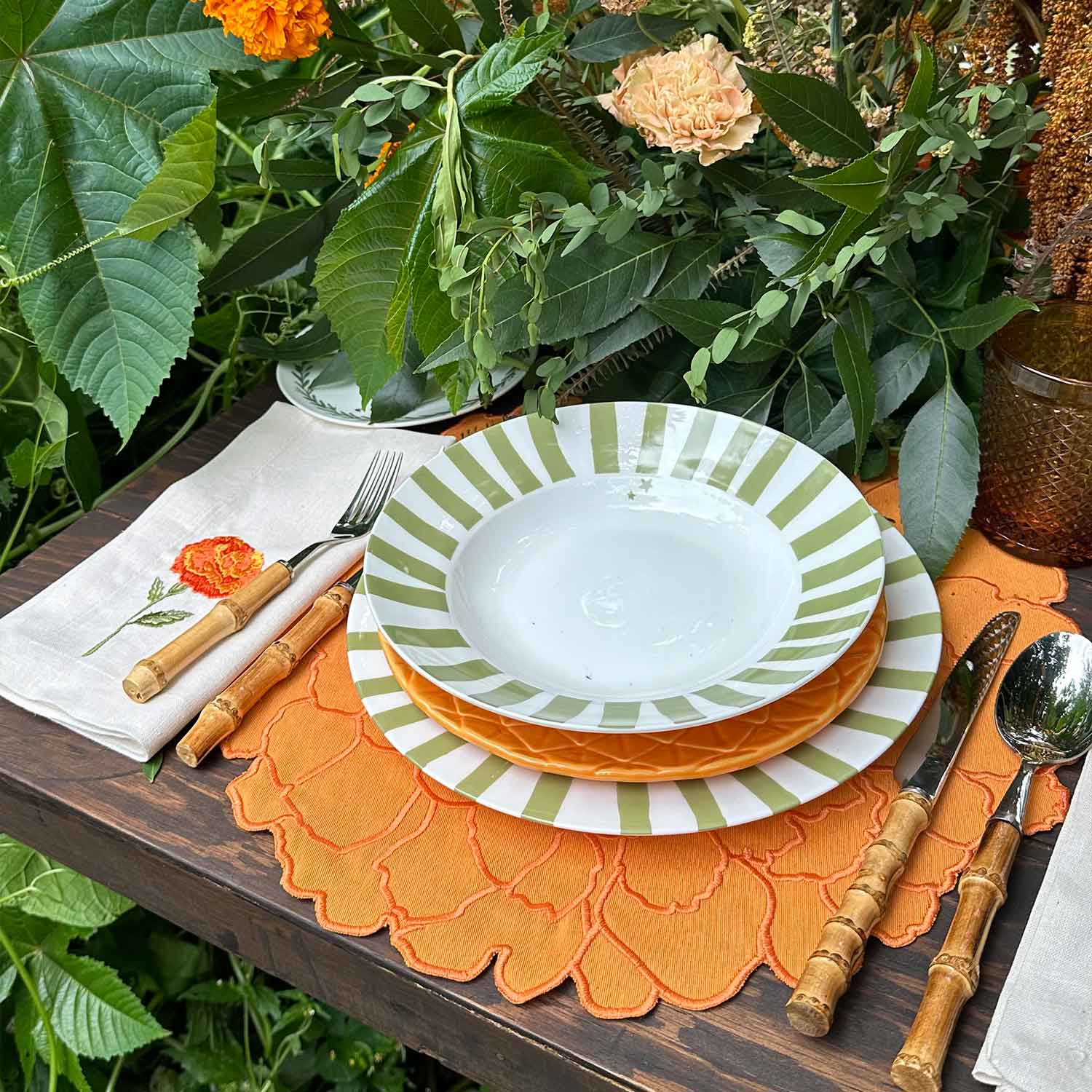 Plato Sopero Candy Cane Verde Olivo. Set de 4