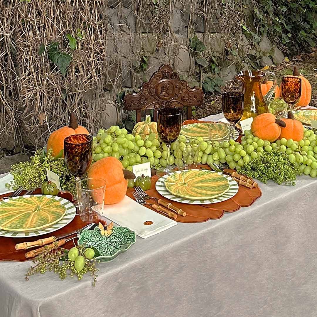 Porta Tarjetas para personalizar lugares en forma de Calabaza en Cerámica Verde, Set de 4