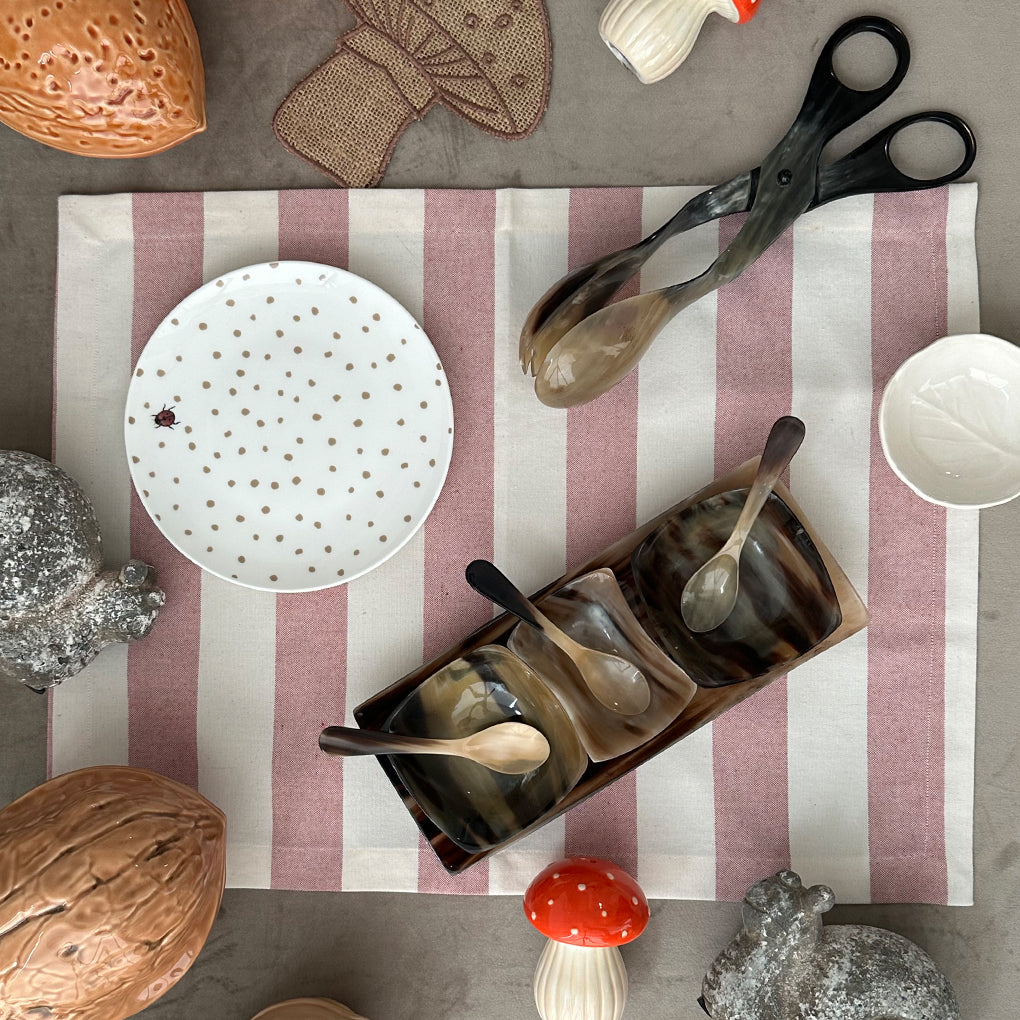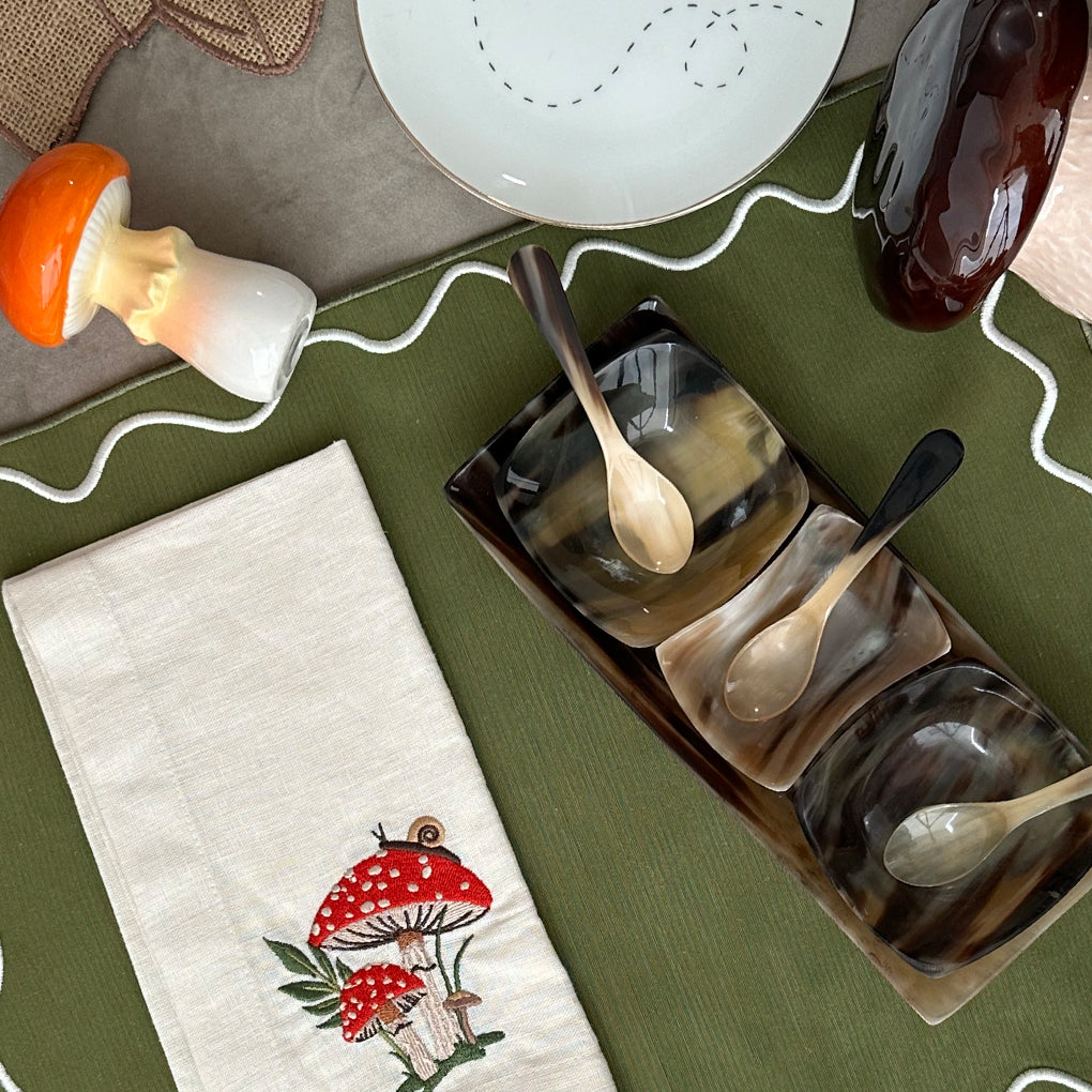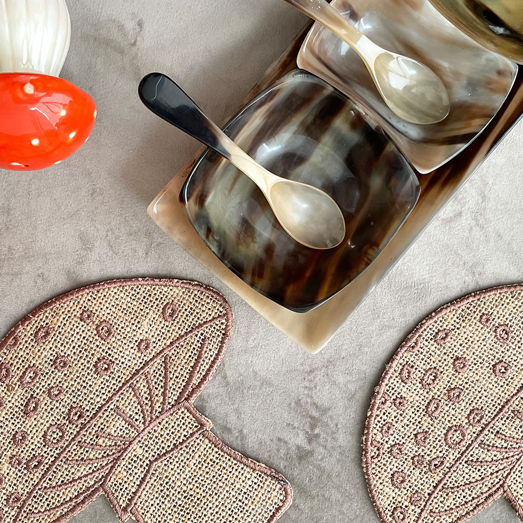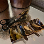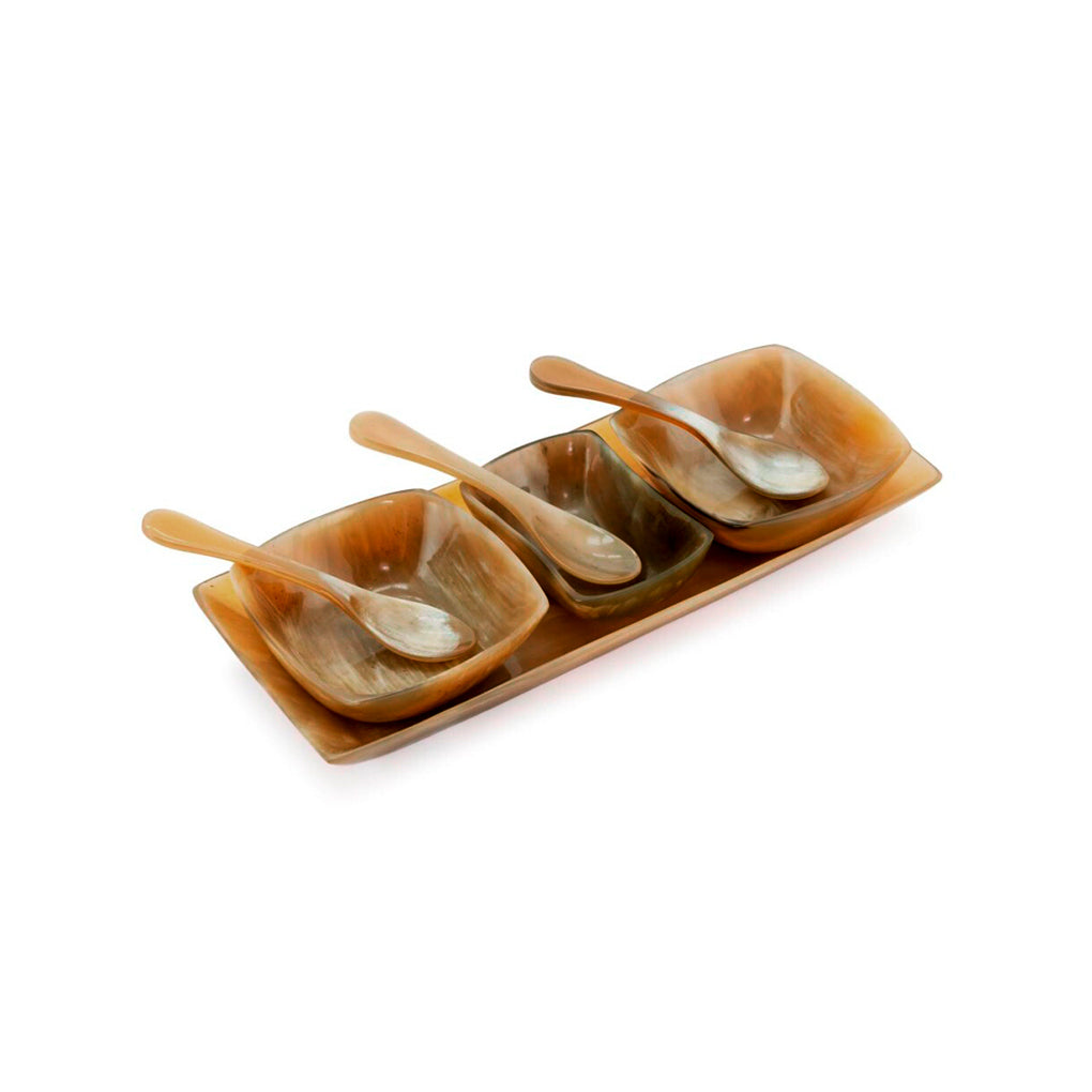Bandeja con 3 Salseros y 3 Cucharas de Cuerno de Resina