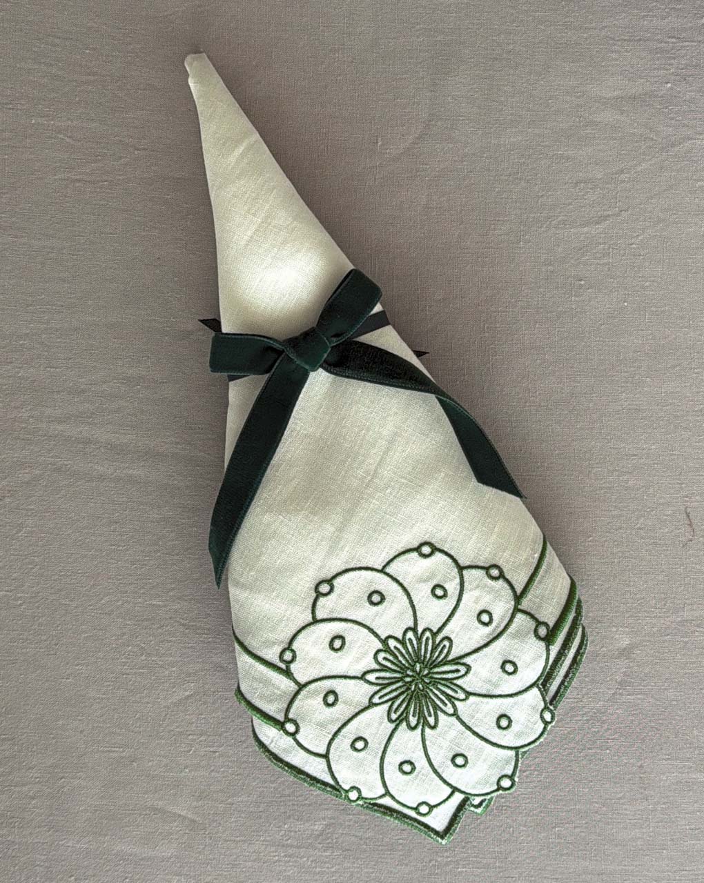 Servilleteros Moño de Terciopelo Verde Oscuro 16mm. Set de 4