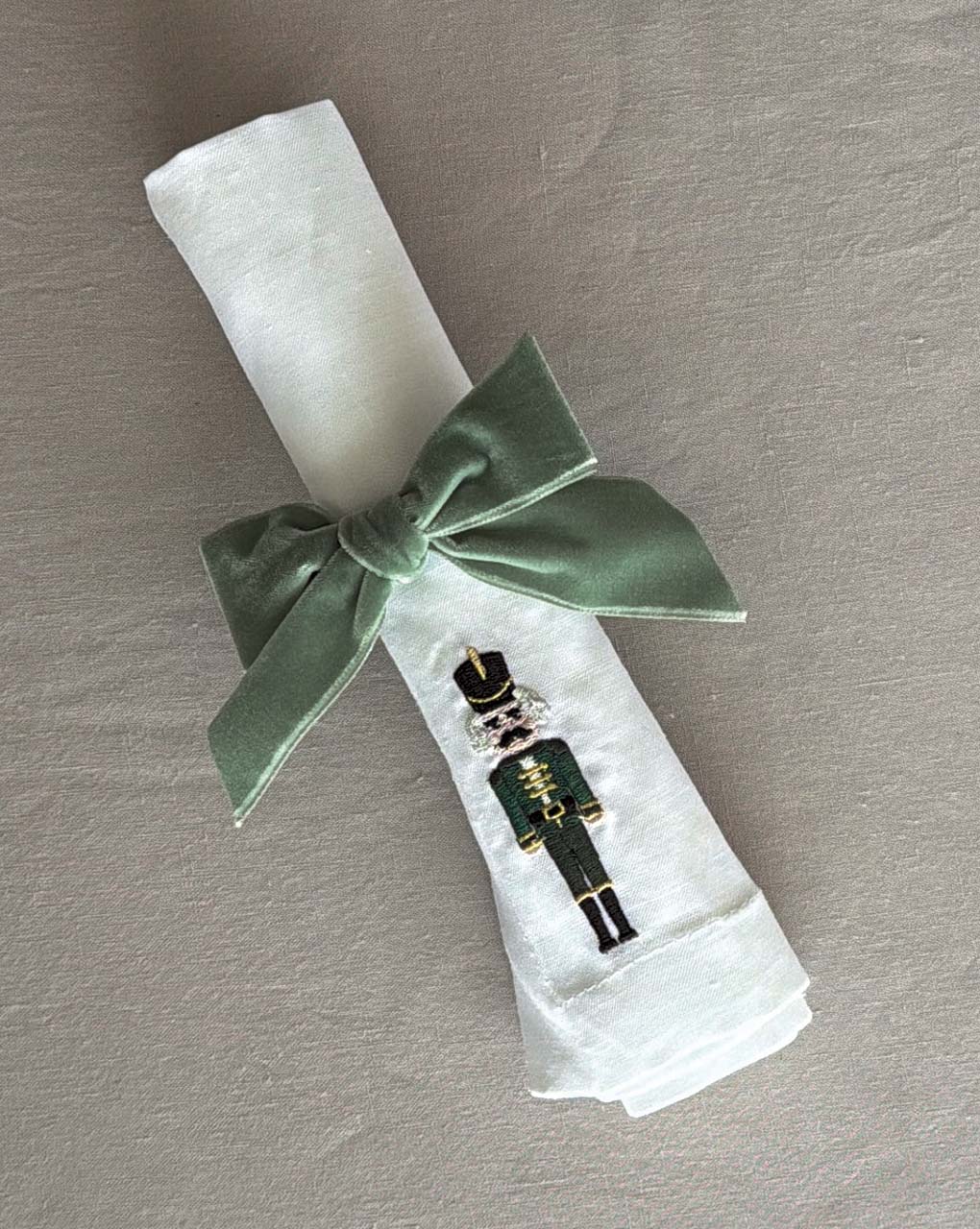 Servilleteros Moño de Terciopelo Verde Salvia 36mm. Set de 4