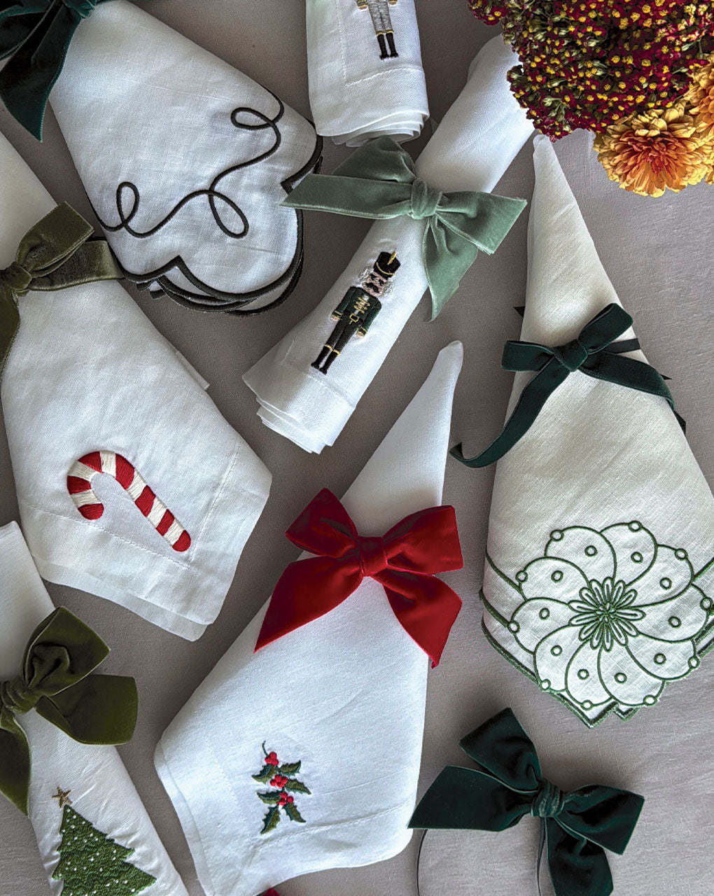 Hermosos listones de terciopelo decorarán tu mesa, agregando un toque festivo y tradicional. No hay nada más chic que ponerse sus moños.
