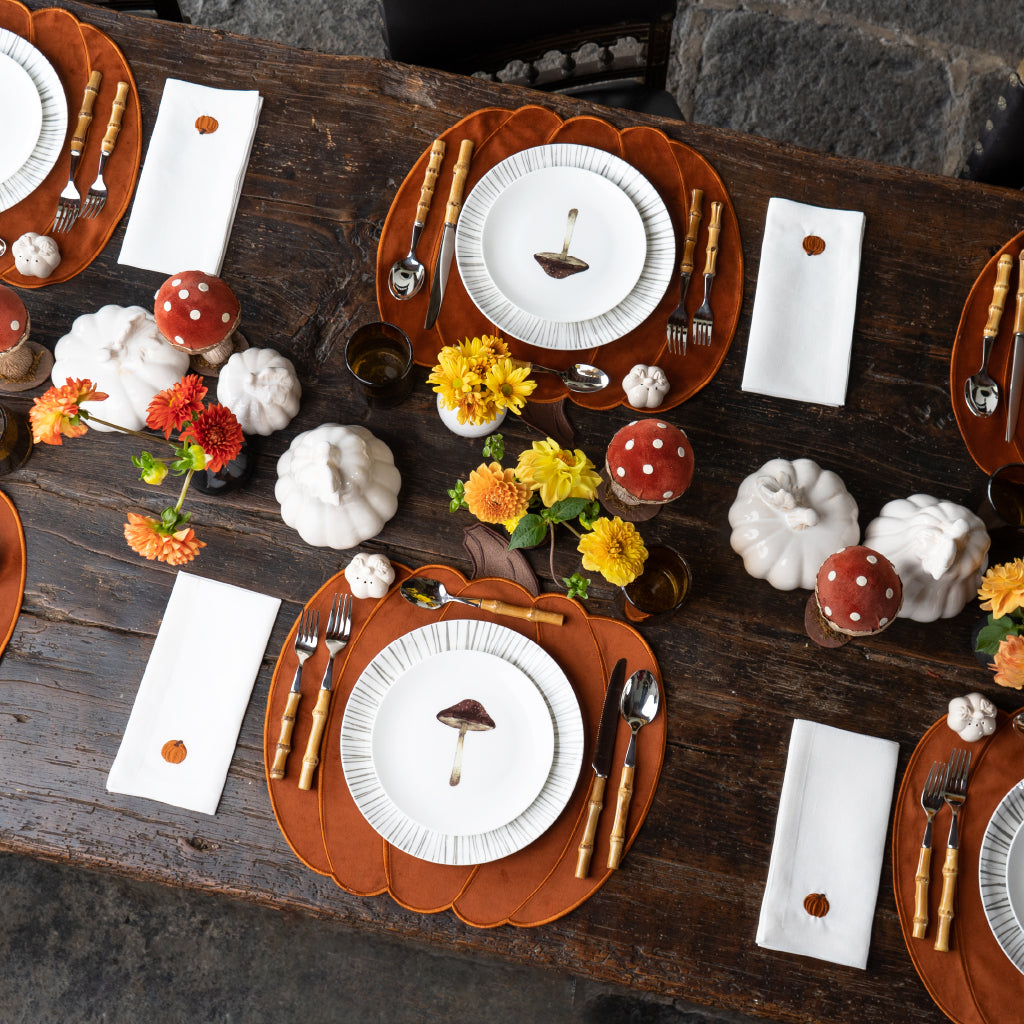 Hermoso juego de 3 calabazas pequeñas de cerámica blanca elaboradas de forma artesanal. Ideales para decorar las mesas de otoño.