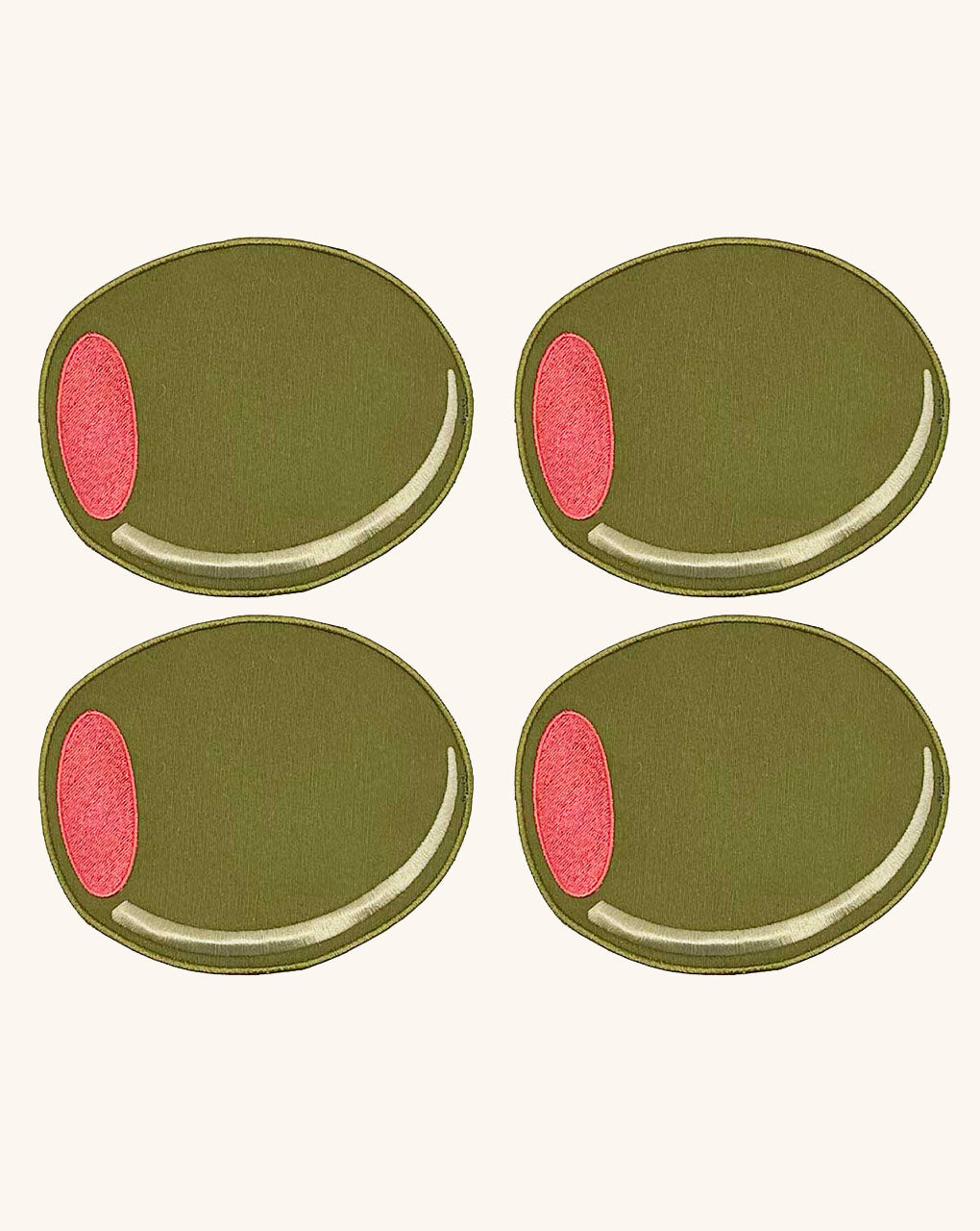 Cocteleras en Forma de Aceituna en Loneta de Algodón Color Olivo. Set de 4