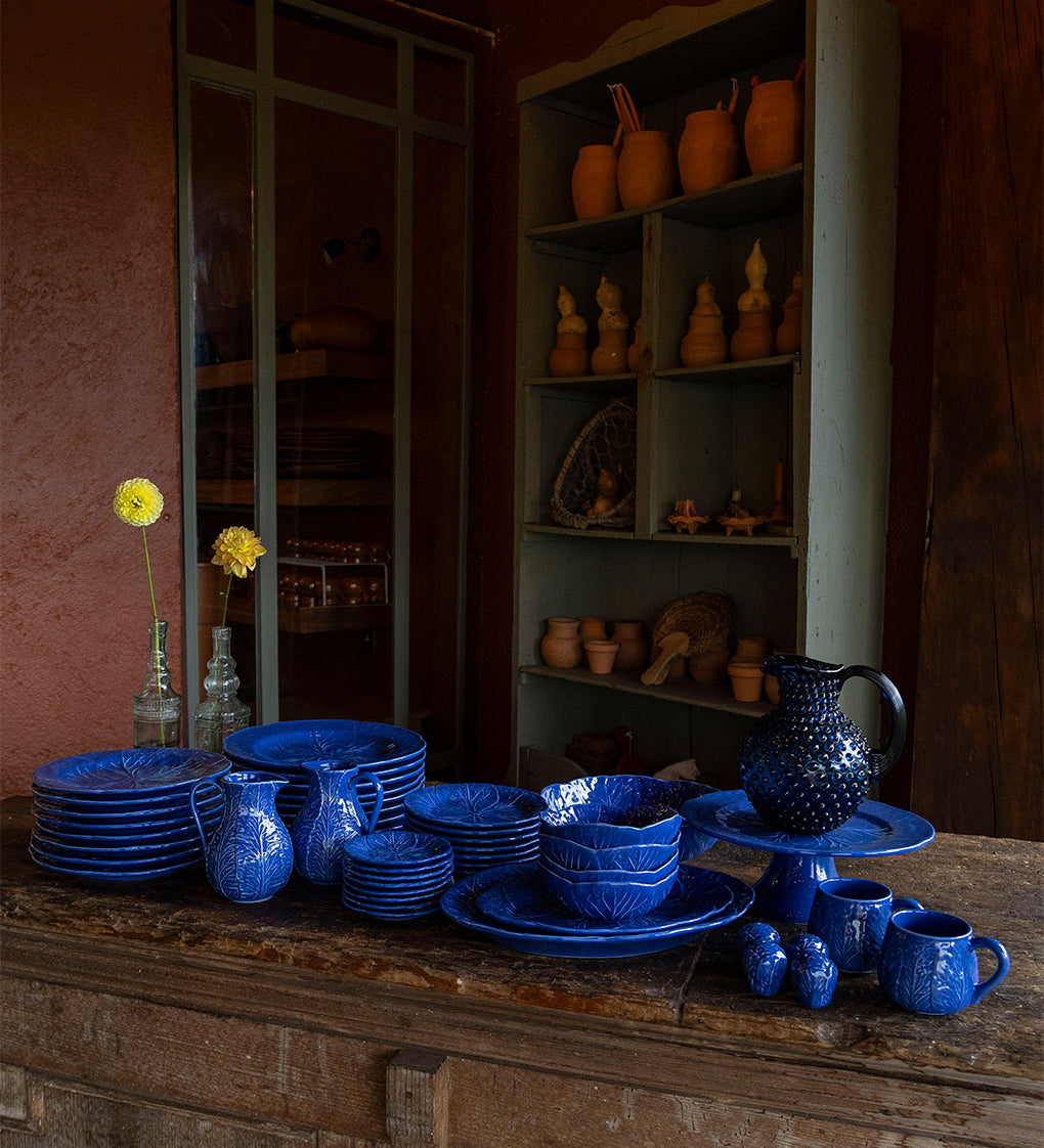 Plato Pan de Repollo Azul Cobalto. Set de 4