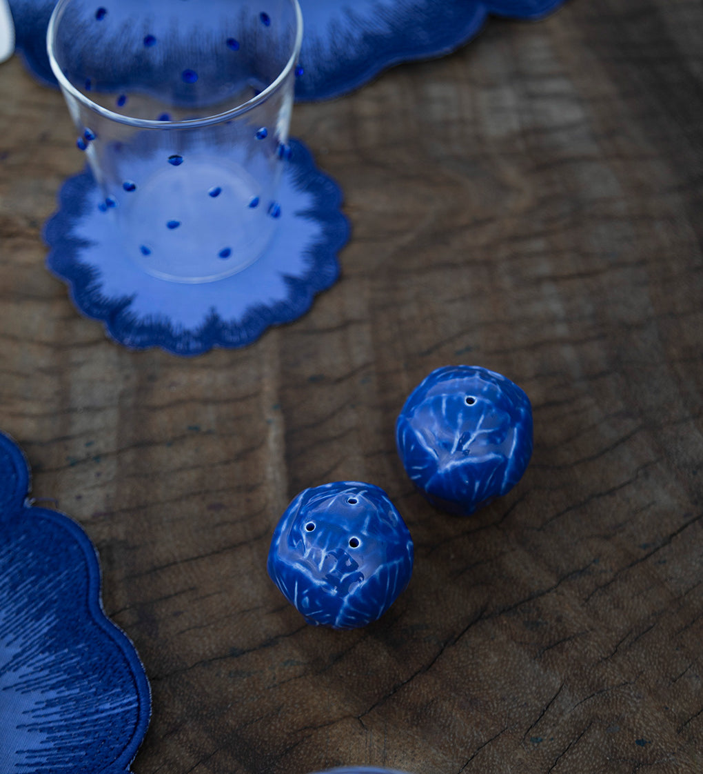 Bajoplato de Repollo Azul Cobalto. Set de 4