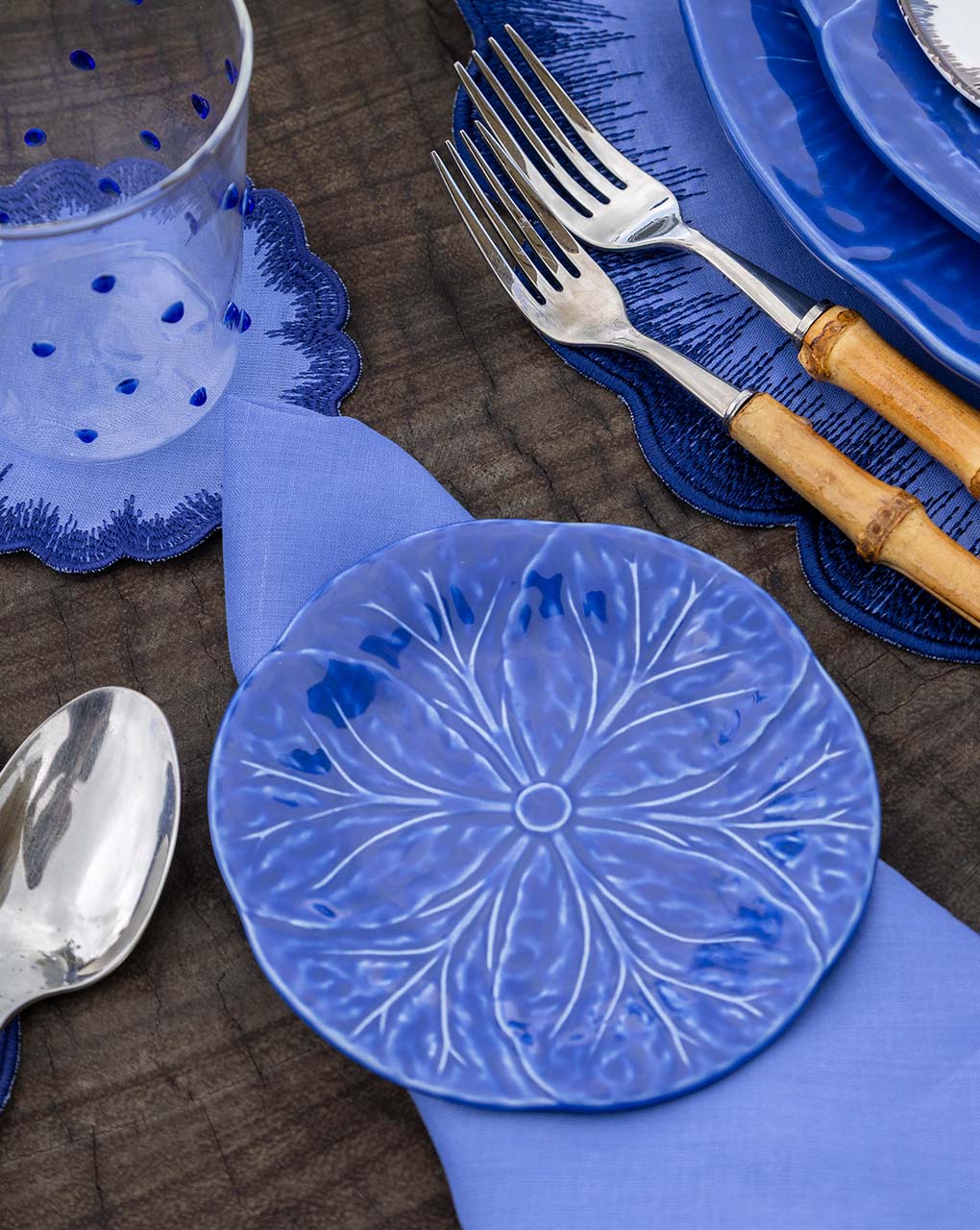Plato Pan de Repollo Azul Cobalto. Set de 4