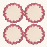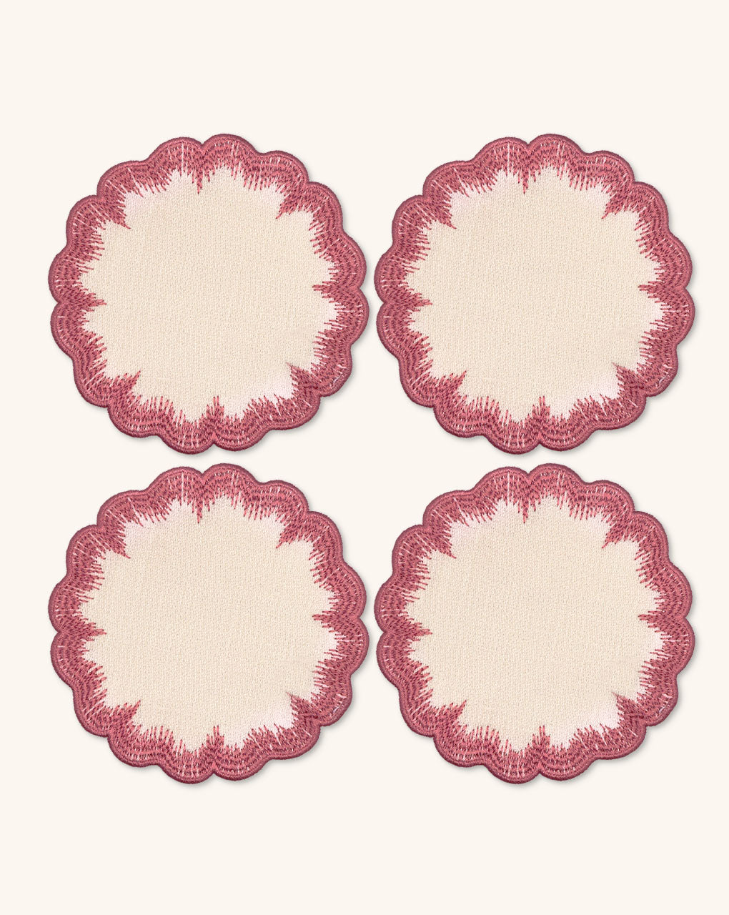 Coasters Vivi en Lino Rosa con Bordado de Pelitos. Set de 4