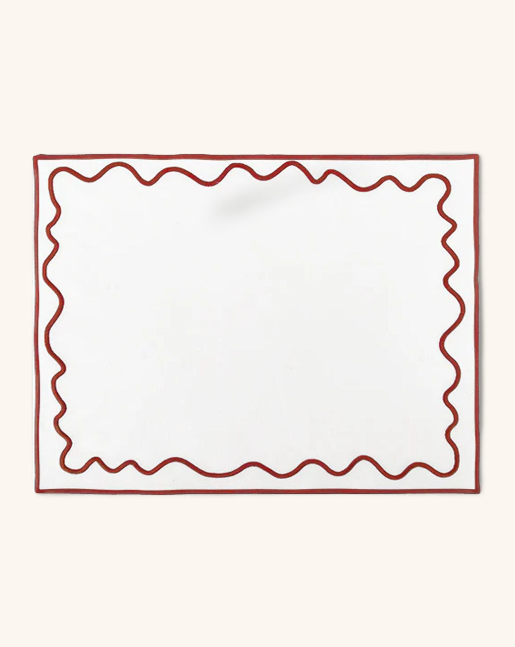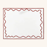 Individuales Regina en Loneta Blanca con Ondas Bordadas en Rojo. Set de 4