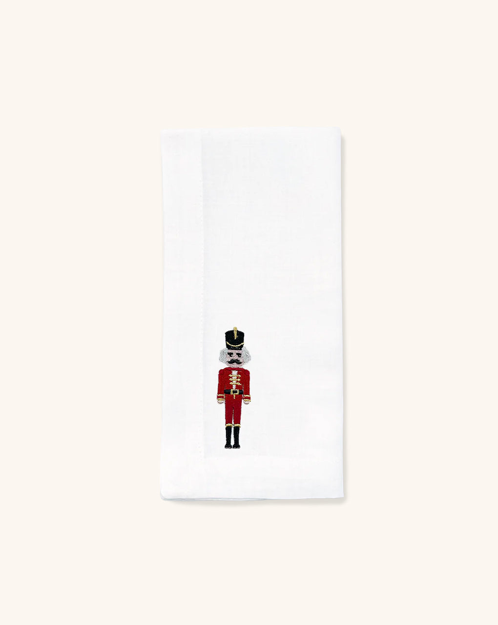 Servilleta en Lino Blanco con Bordado de Nutcracker. Set de 4