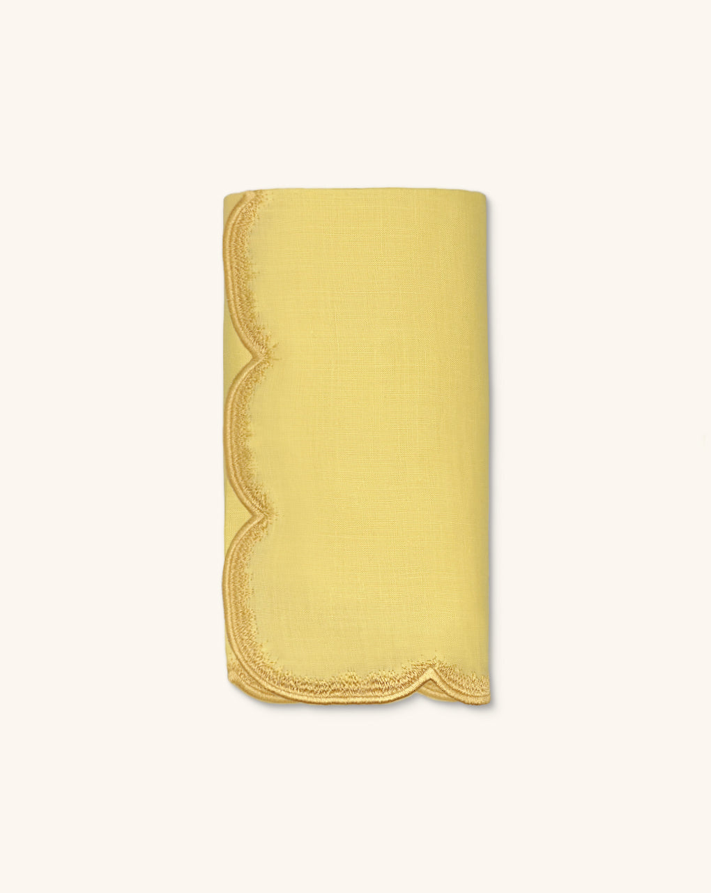 Servilletas Vivi en Lino Amarillo con Bordado de Pelitos. Set de 4