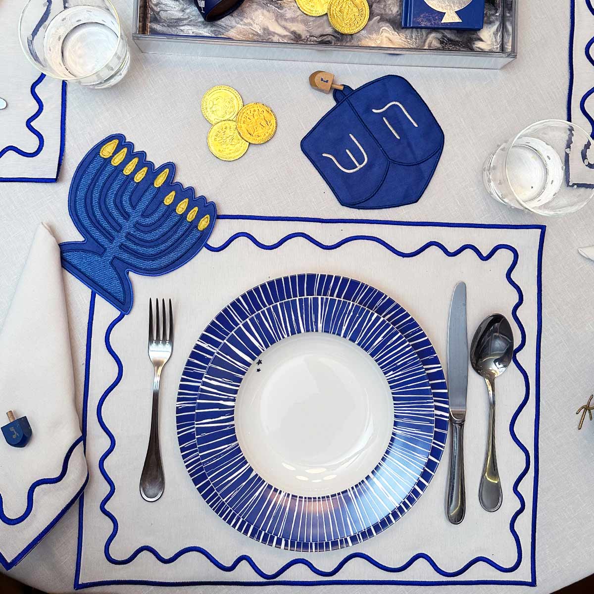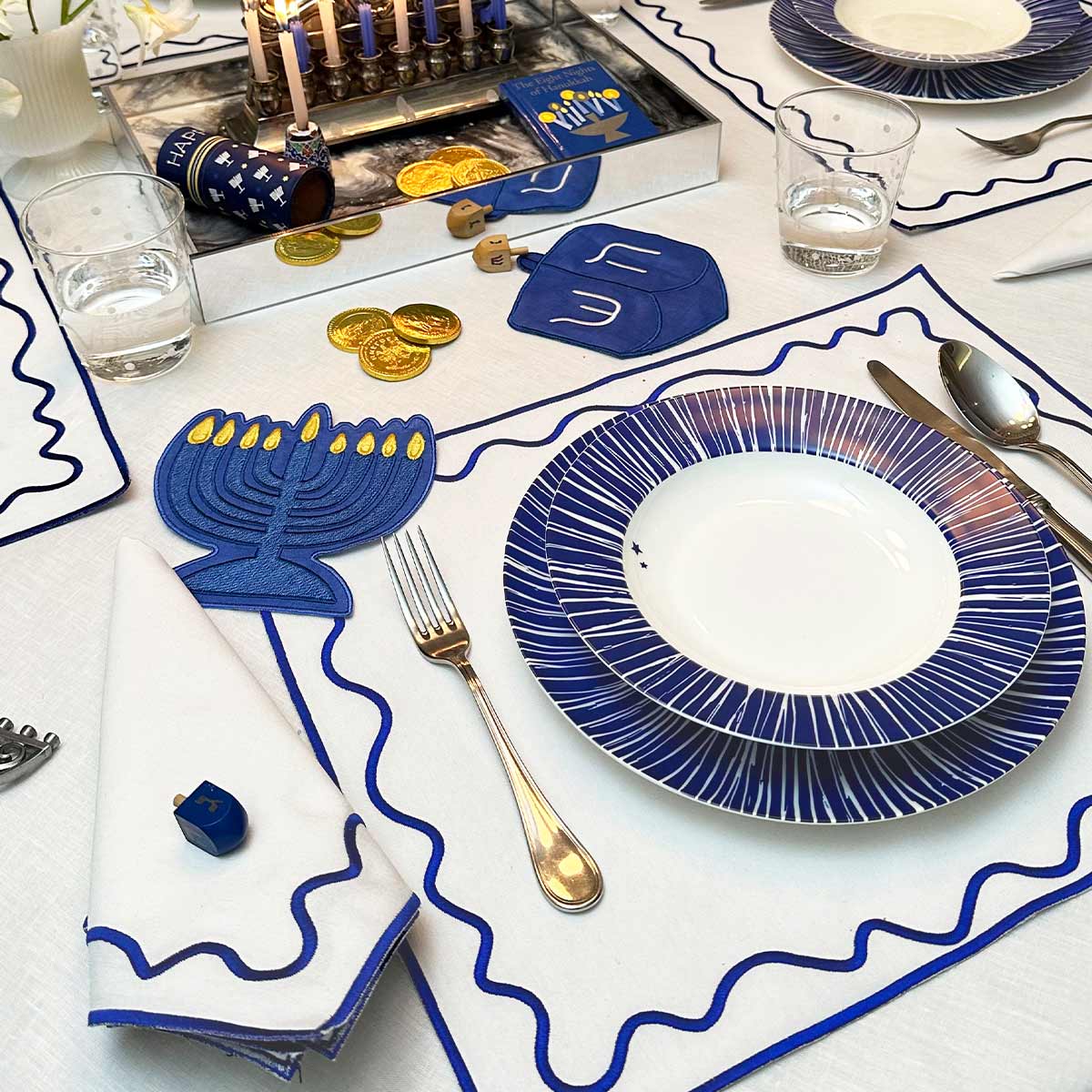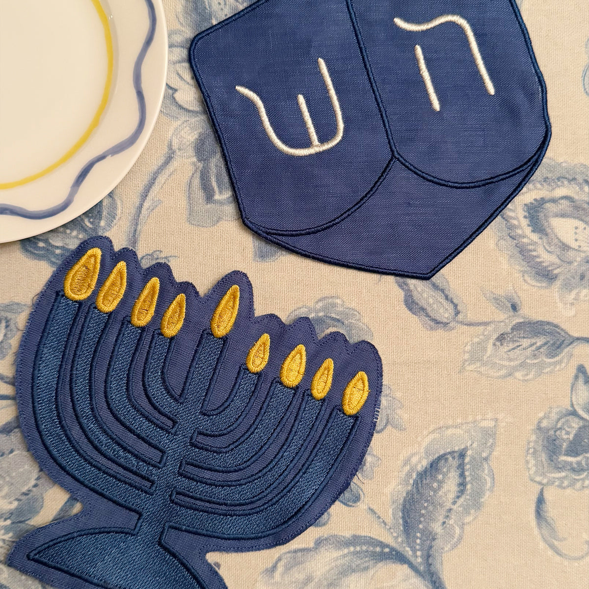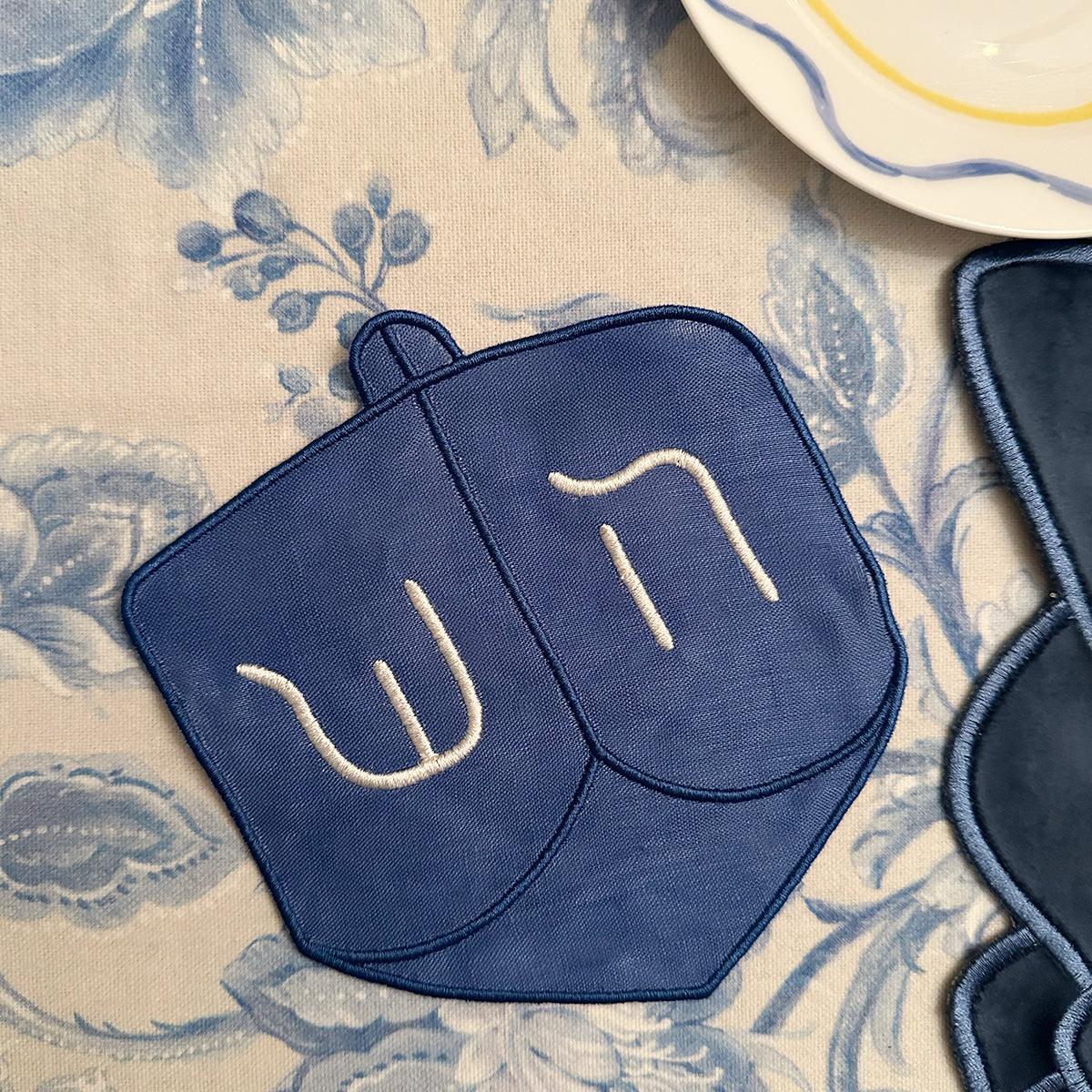 Juego de 4 servilletas cocteleras en forma de dreidel, ideales para la mesa de Januká