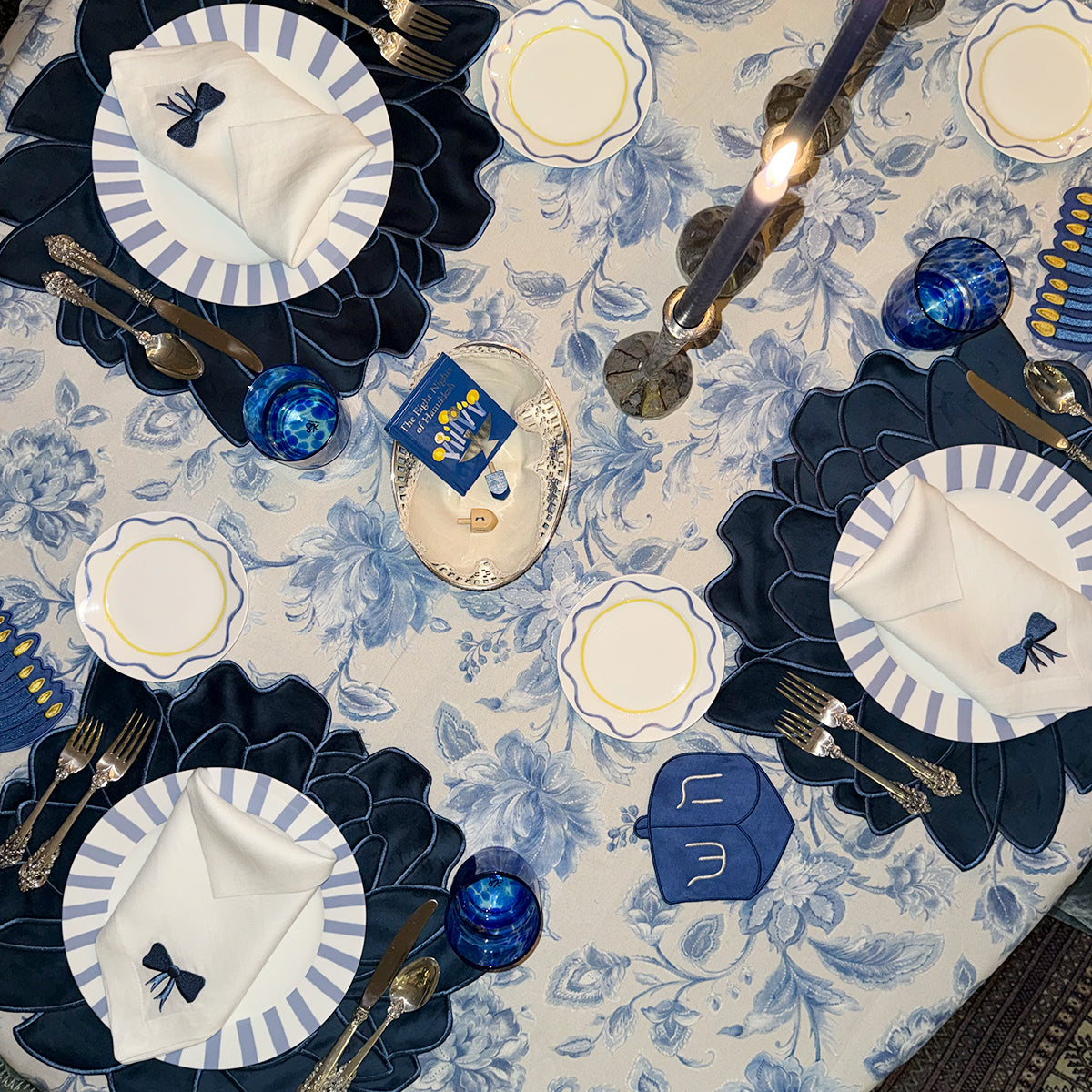 Servilletas Vivi en Lino Azul con Bordado de Pelitos. Set de 4
