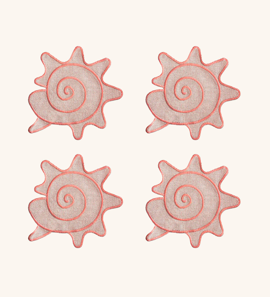 Coasters Arrecife con Bordado de Caracol Marino en Algodón Rosa Set de 4