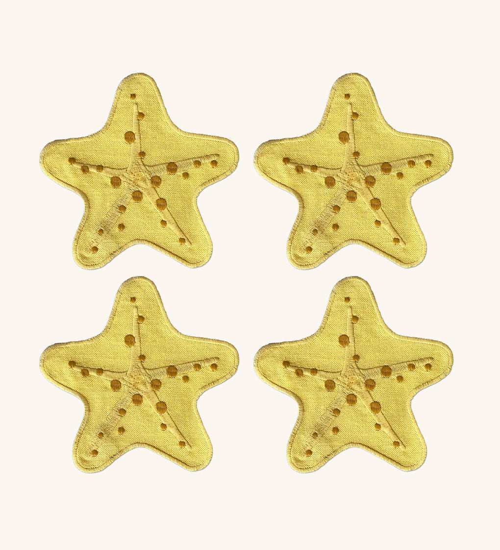 Cocteleras Arrecife con Bordado de Estrella de Mar en Algodón Amarillo. Set de 4