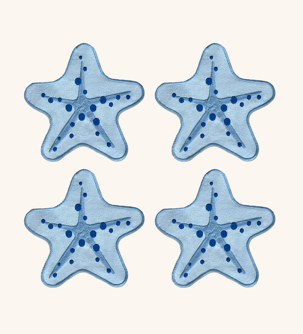 Cocteleras Arrecife con Bordado de Estrella de Mar en Algodón Azul. Set de 4