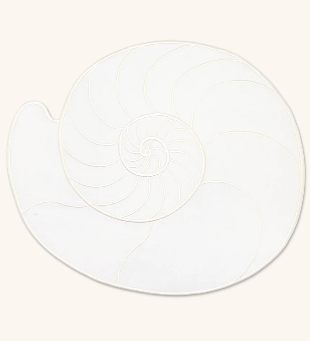 Individuales La Mar de Nautilus en Lino Blanco con Bordado Ivory. Set de 4