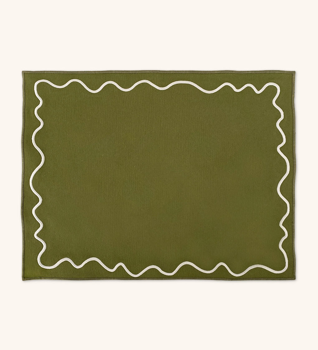 Juego de 4 Manteles Individuales Regina con Ondas Ivory en Loneta Olivo