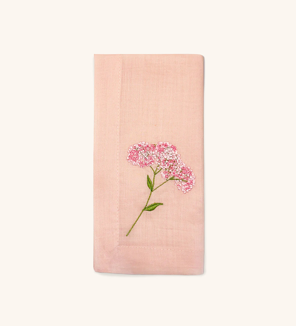 Servilletas Bouquet en Lino Rosa con Bordado de Flor. Set de 4