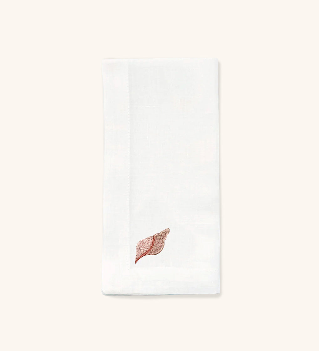Servilletas La Mar en Lino Blanco con Bordado de Caracol de Mar. Set de 4
