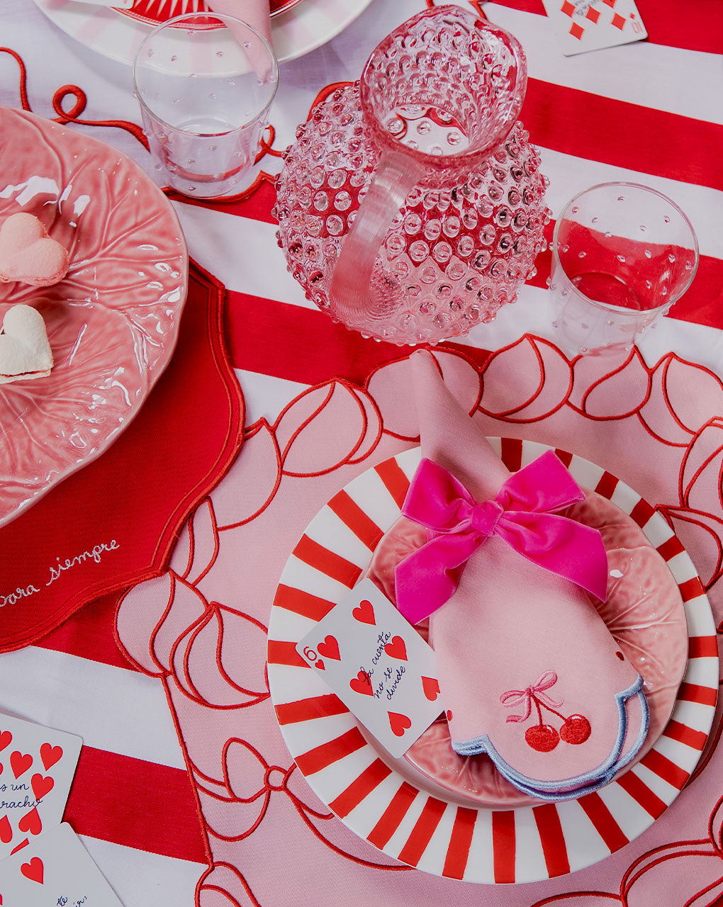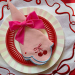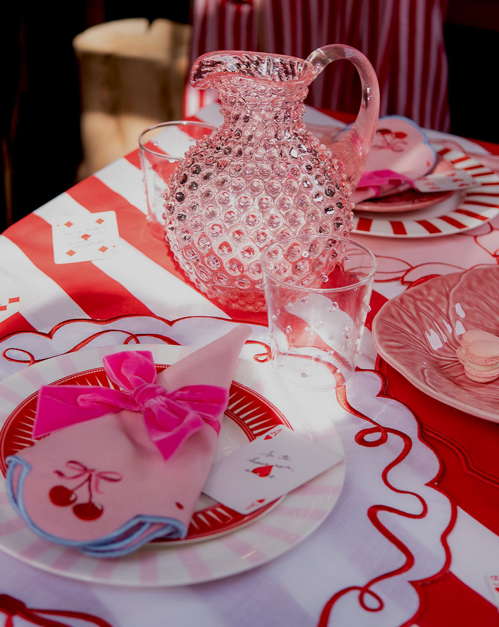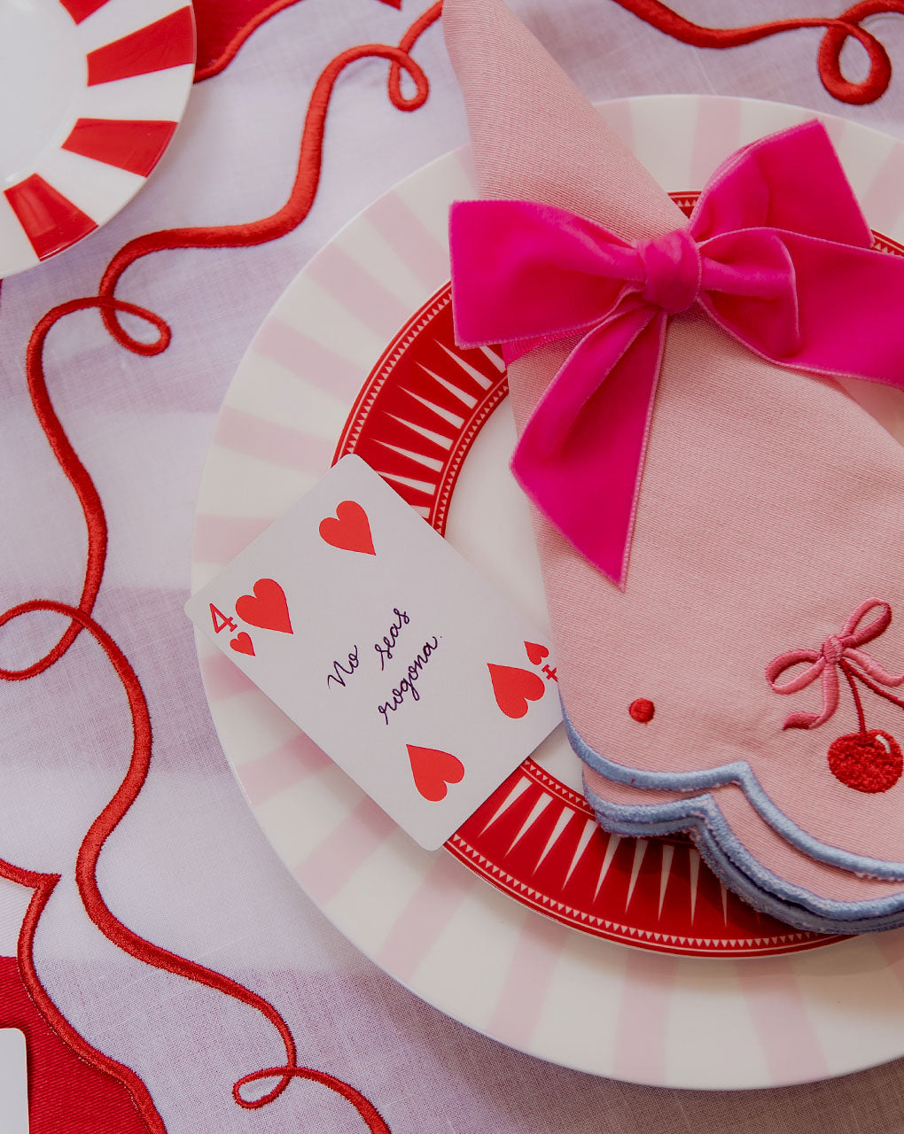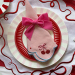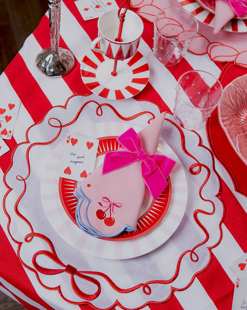 Servilletas Cherry en Algodón Rosa con Bordado de Moño y Cerecitas. Set de 4.