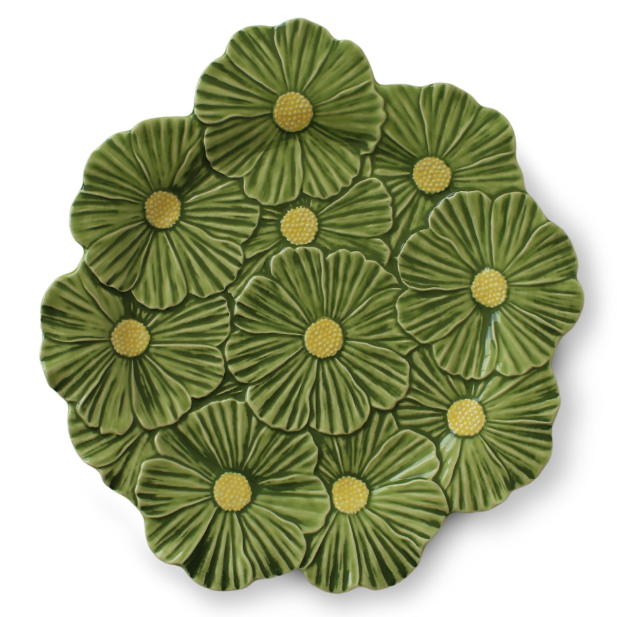Bajo Plato Margaritas Verdes y Amarillo. Set de 4