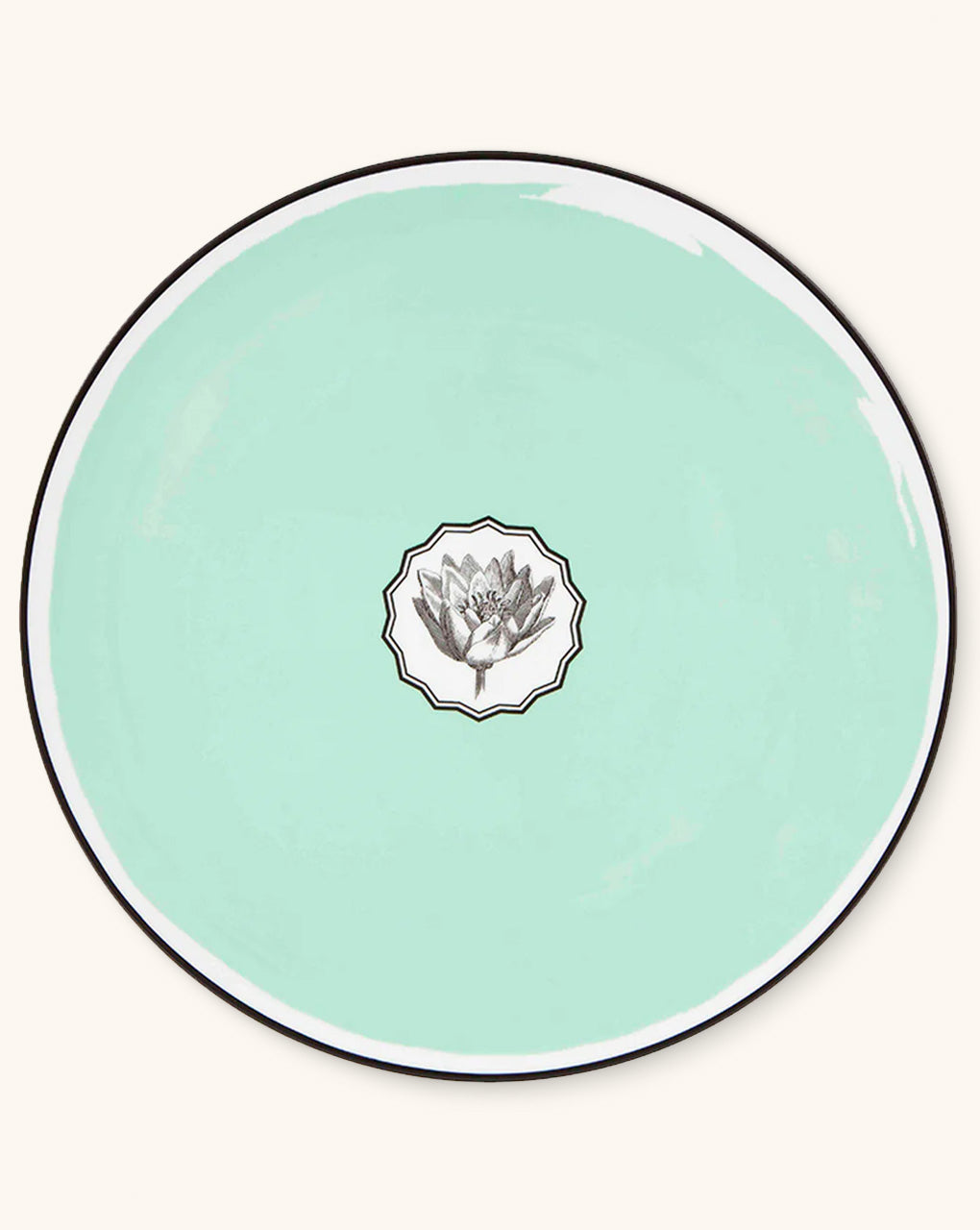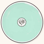 Plato base de porcelana en color verde menta de Vista Alegre en colaboración con Christian Lacroix Maison, set con 4 piezas.